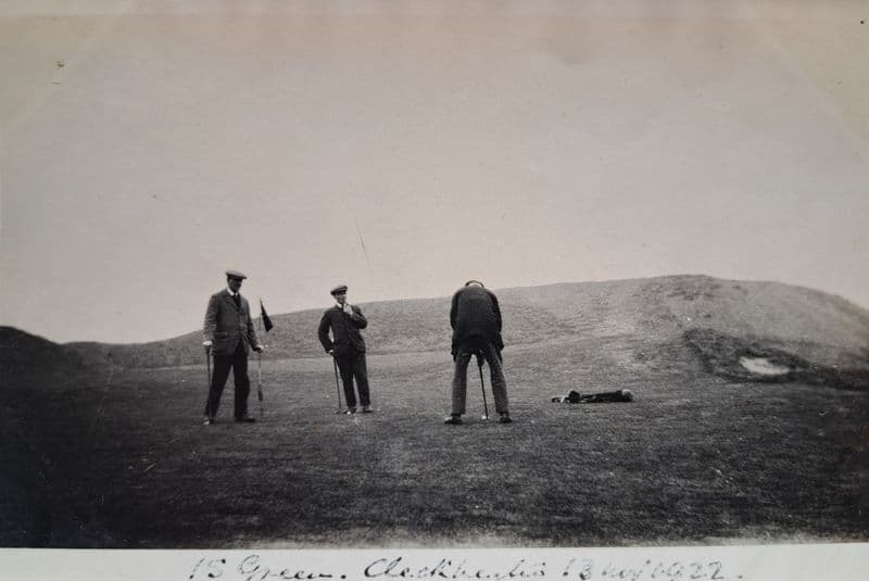 Used photocard, showing the 18th green at the Cleckheaton Golf Club; in good condition; c.9cm by 14cm; front of card dated 1922