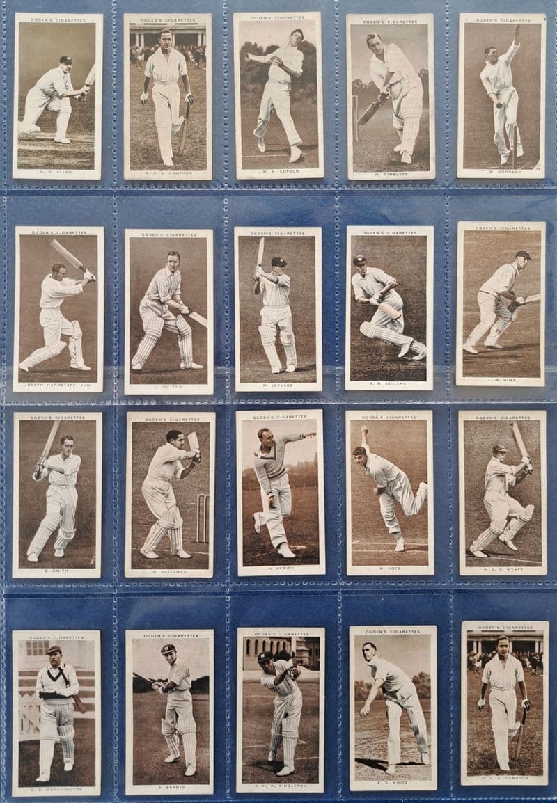 Nineteen cards from the "Prominent Cricketers of 1938", produced by Ogden's; in good condition; action shots; cards are 1, 4, 5, 10, 11, 15, 17, 23-25, 28, 30, 31, 33, 36, 41 and 50