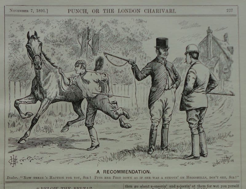 Racing cartoon by an unknown artist - though the signature appears to be HJC or CJH or .....; half-page cartoon from November 7, 1891. Would look excellent framed ..... The Racketeer knows as he already has a number of these in the study!