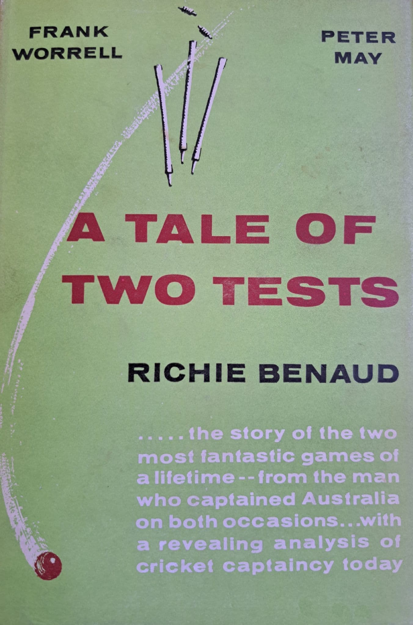 Published by Hodder & Staughton in 1962; 126 pages; first edition; hardback with dust jacket in good condition; black and white illustrations; the story of two extraordinary tests, as Richie Benaud talks to Frank Worrell and Peter May