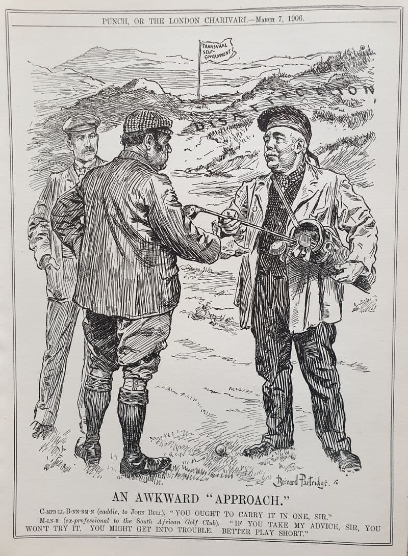 Golfing / politics cartoon by Bernard Partridge; full page, approximately 18cm by 25cm; dates to March 7, 1906. Would look excellent framed ..... The Racketeer knows as he already has a number of these in the study!