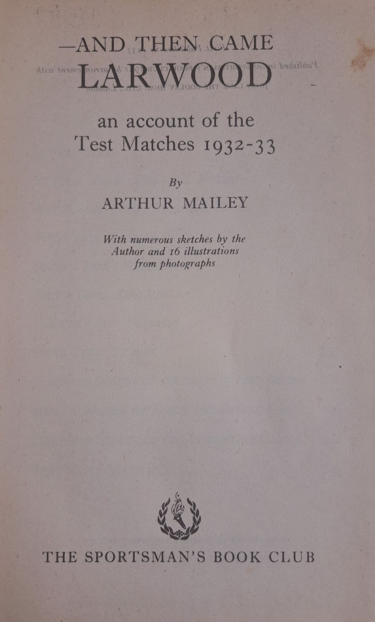 First published in 1933, this is the Sportsman's Book Club edition of 1951; sub-titled "an account of the Test Matches 1932-33"; green cloth cover with wear to the corners and spine - sound internally; 244 pages; photographs and images throughout
