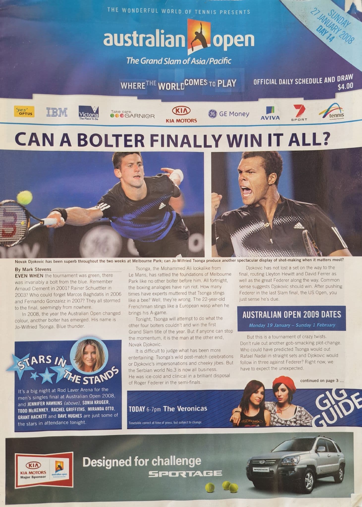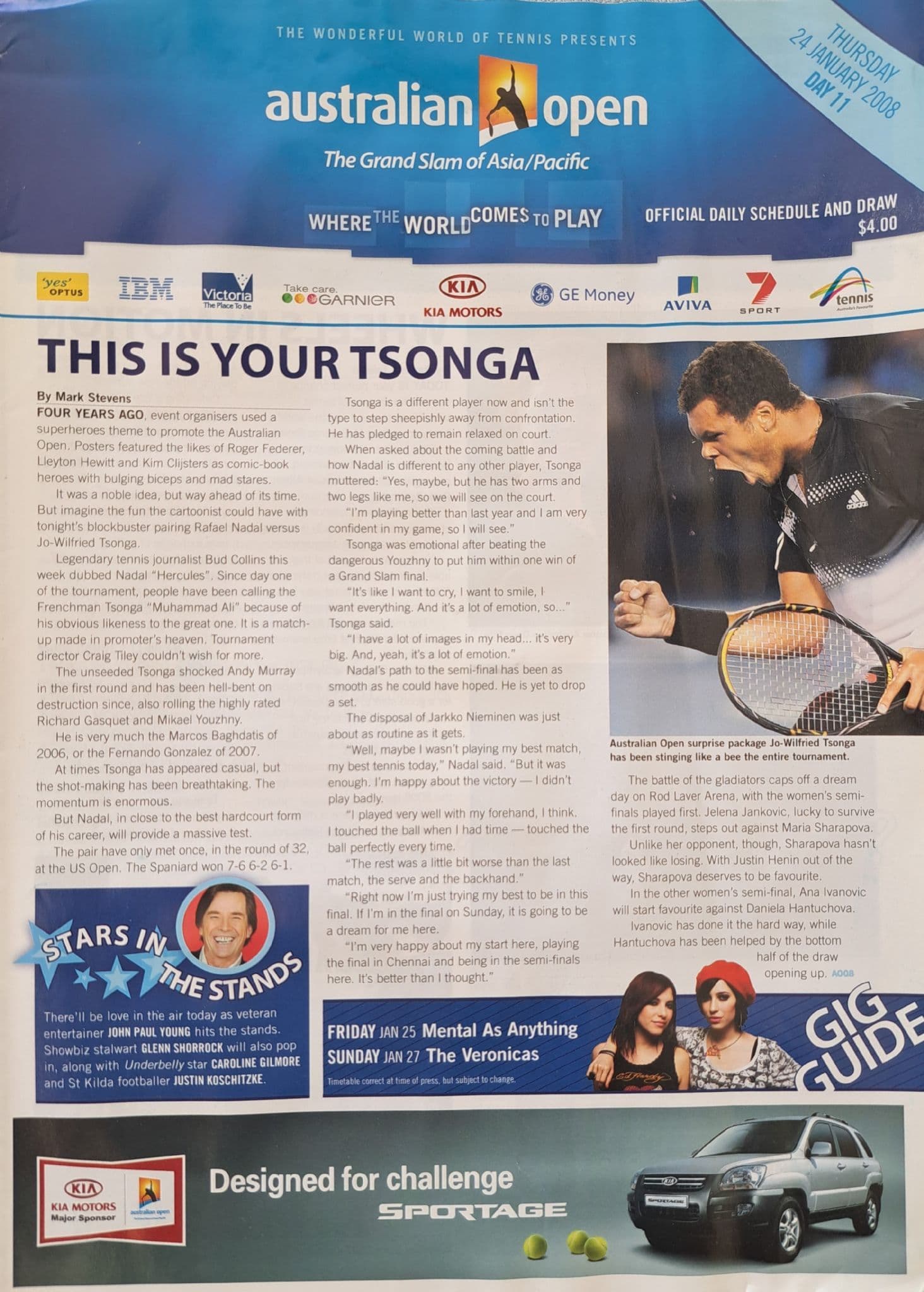 Australian Open programme for 2008; 224 pages; also includes 12-page schedule and draw for Thursday January 24th / Sunday January 27th - both are in fairly good condition, with slight wear to corners and edges