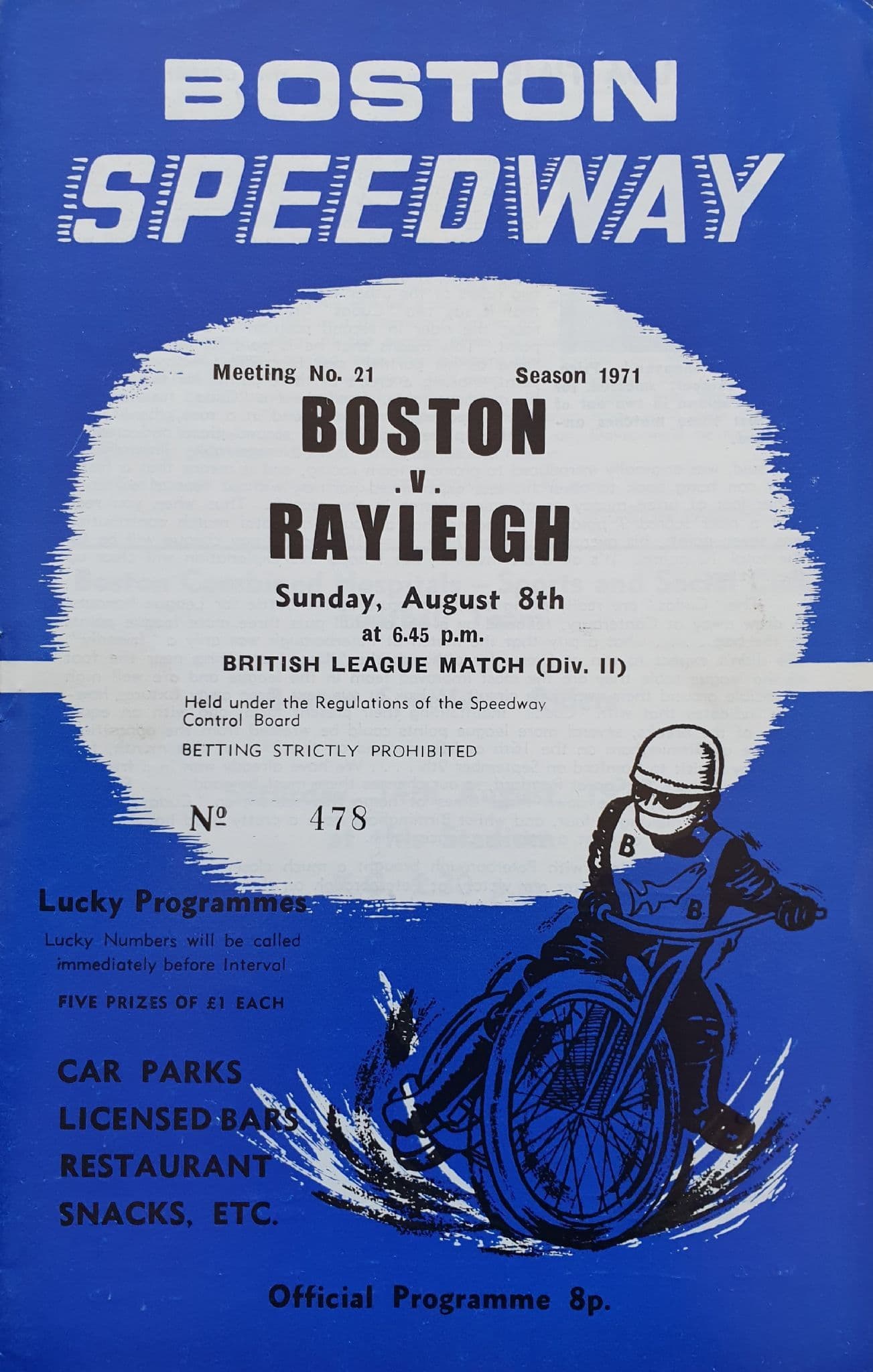 Programme for the British League Division II fixture, between the Barracudas and Rayleigh; 8 pages; in good condition, with results added to the centre pages and small crease to the rear page
