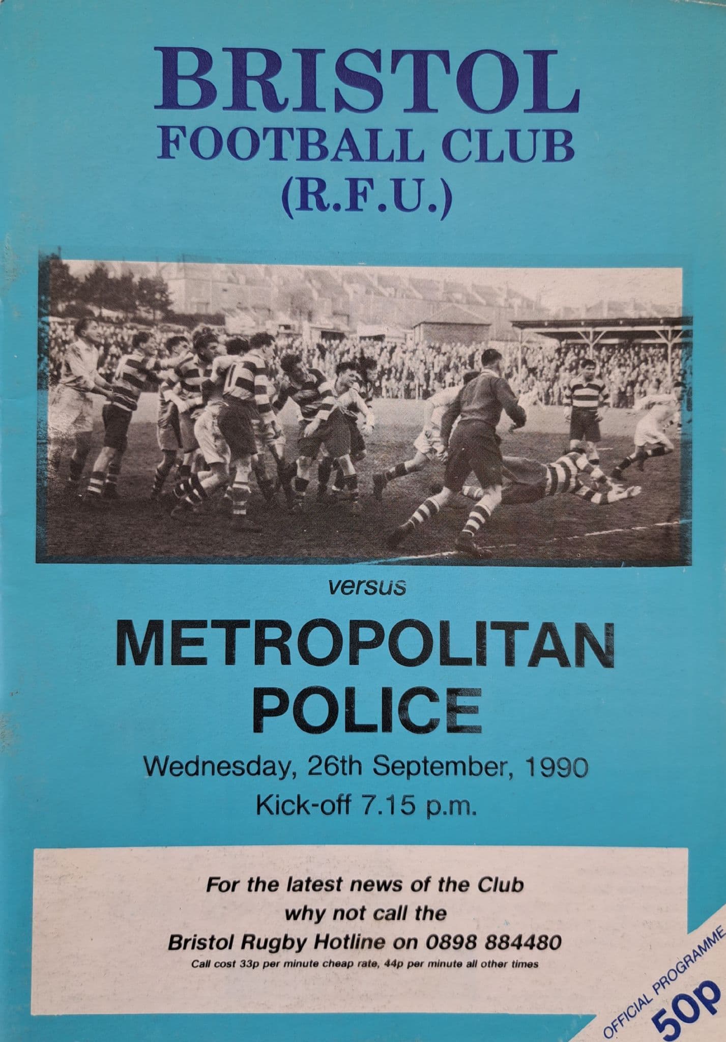 Programme from the Bristol v Metropolitan Police game, played in September, 1990; 36 pages; in good condition, with slight signs of some staple rusting