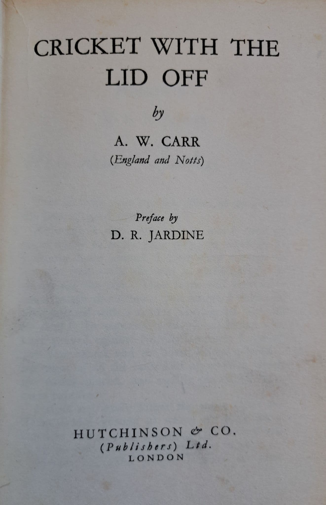 Published by Hutchinson in 1935; first edition; 248 pages, with adverts beyond; hardback with no dust-jacket - in good condition, with very slight wear to the top and bottom of the spine; black and white illustrations; preface by DR Jardine; biography of the Nottinghamshire and England player