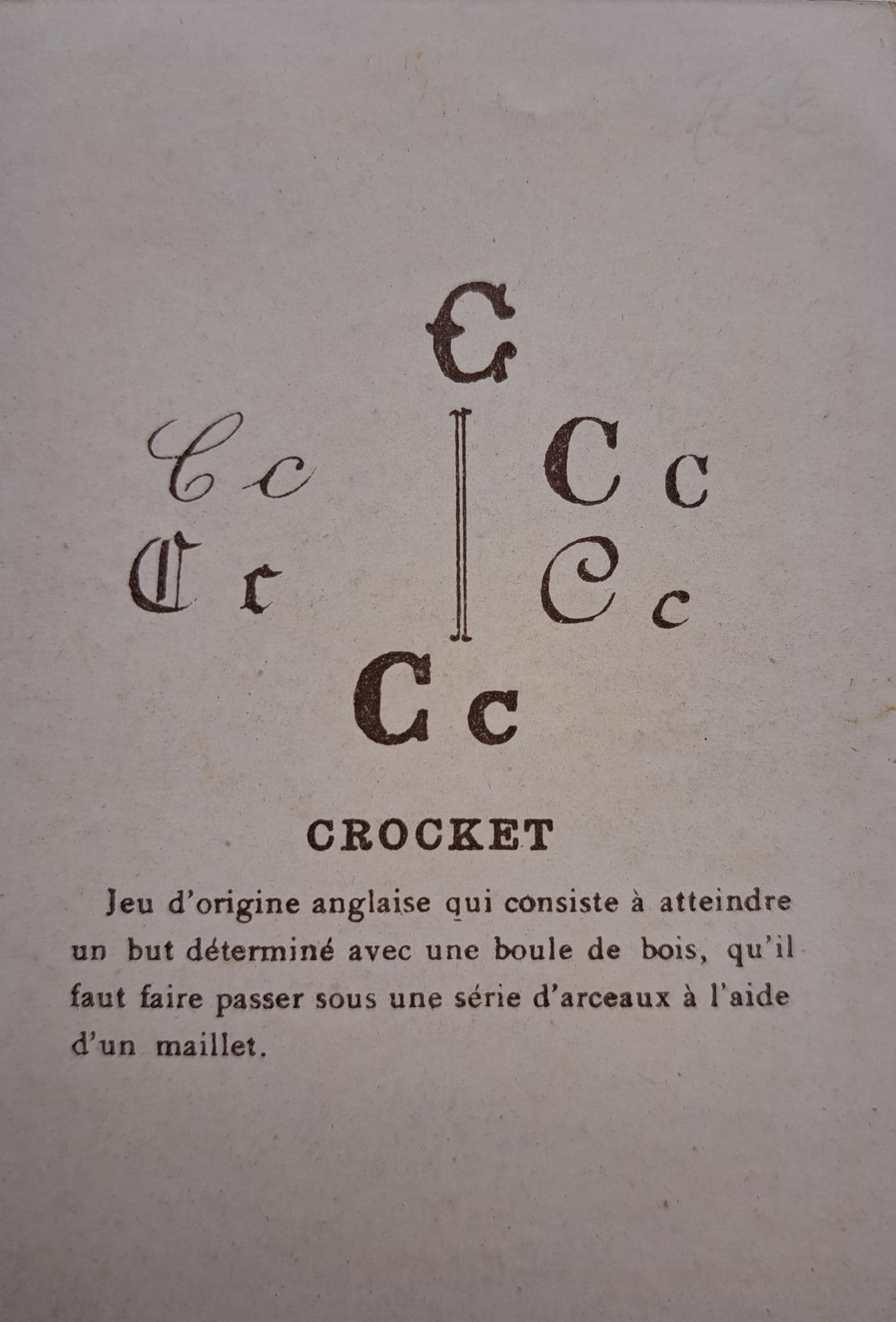 Card produced by B Sirven of Toulouse and Paris; c.8cm by 12cm; in good condition; "C" and "CROCKET" to the front - description of the game to the rear