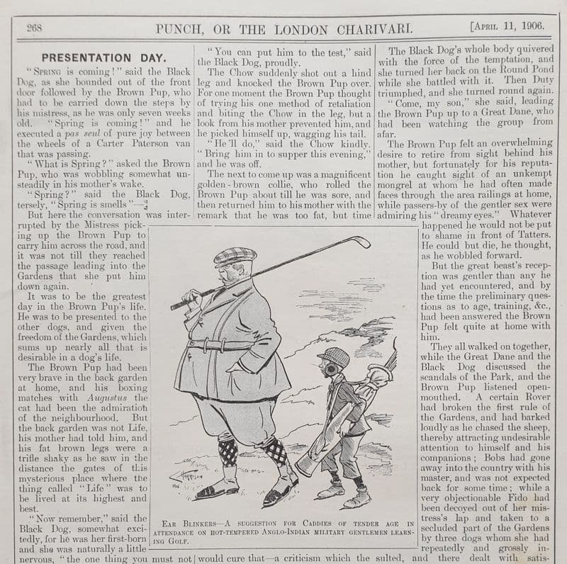 Golf cartoon by Charles Harrison, who contributed to Punch from 1895 to 1926; small cartoon from April 11th, 1906; 9cm by 11cm in the centre of the page. Would look excellent framed ..... The Racketeer knows as he already has a number of these in the study!