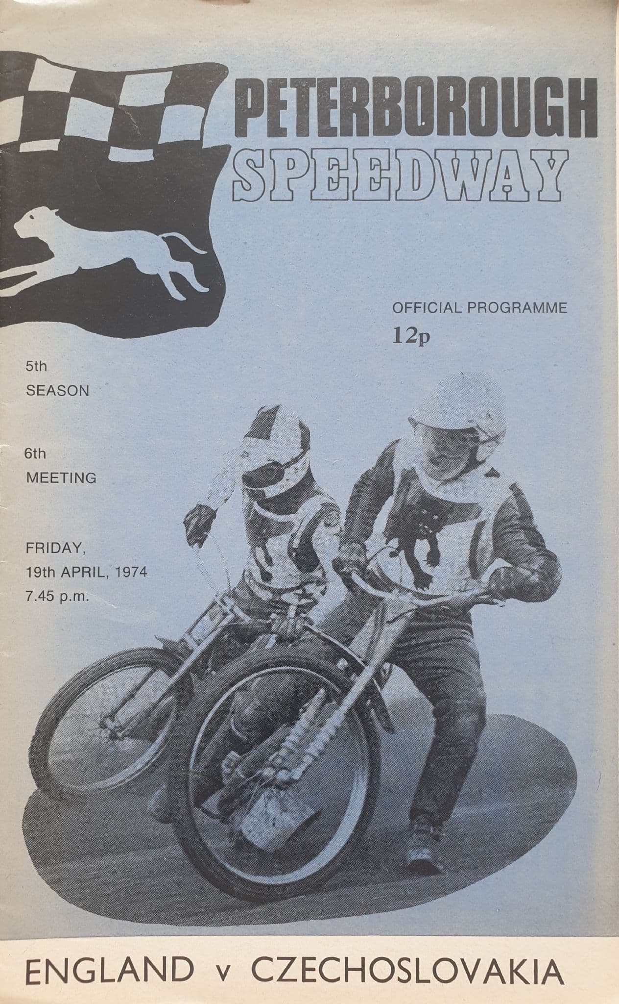 , held at Peterborough Speedway Track, on Friday April 19th, 1974; 12 pages; in good condition, with results added neatly
