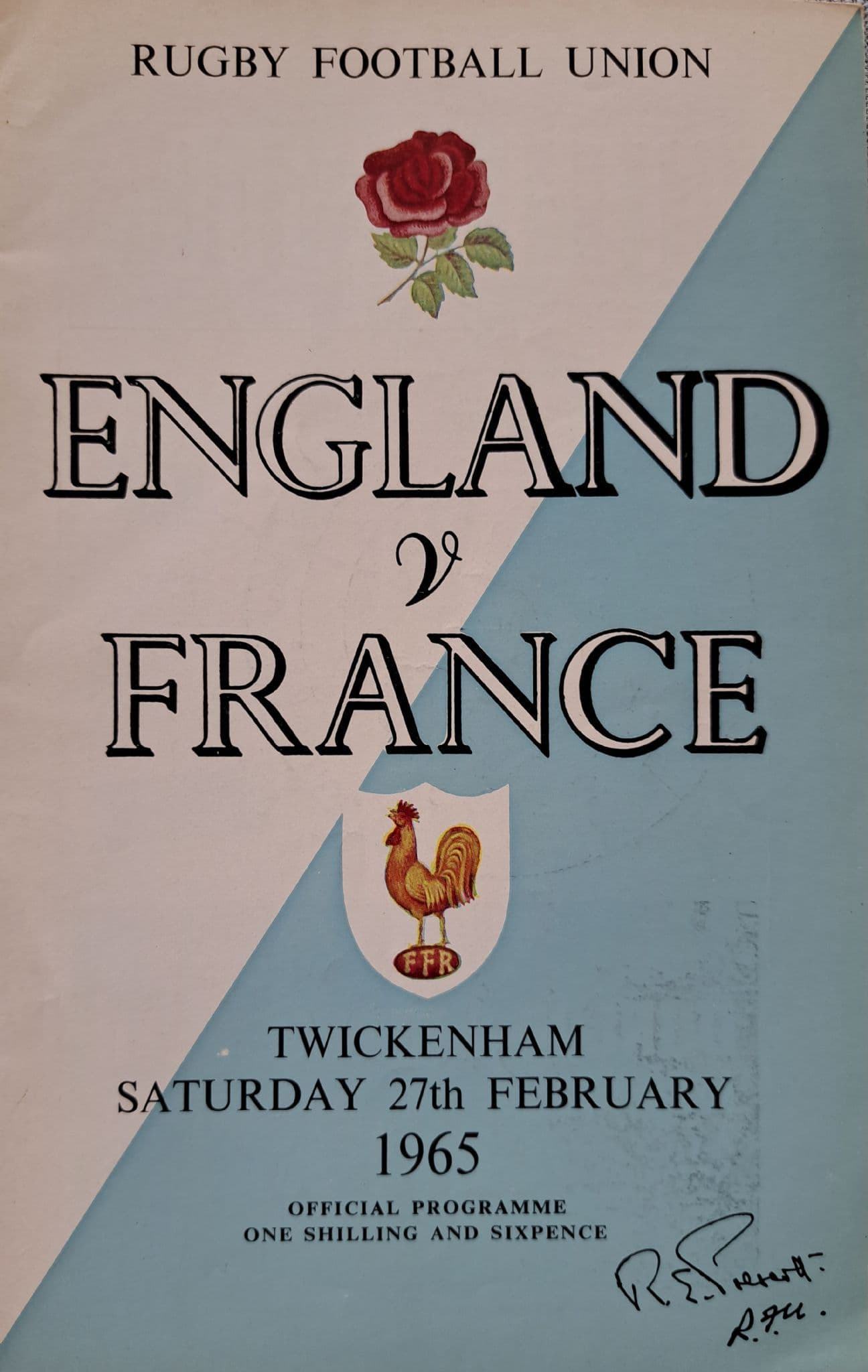 Programme from the England v France Five Nations match, which took place at Twickenham on February 27th, 1965; in good condition; 28 pages