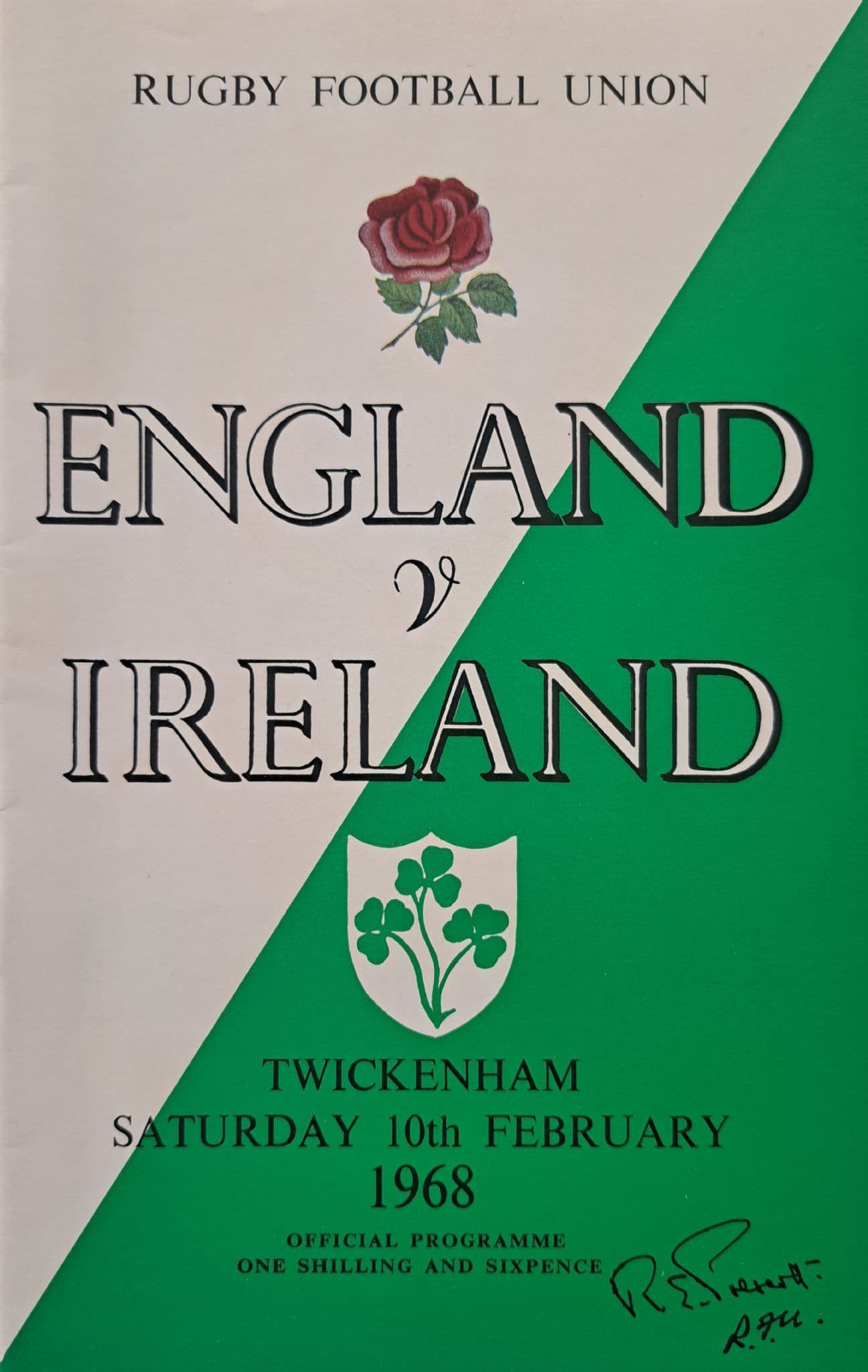 Programme for the Five Nations match between England and Ireland, played at Twickenham on Saturday 10th February 1968; in good condition, with no writing; 28 pages