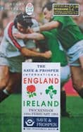 Programme for the Five Nations match between England and Ireland, played at Twickenham on Saturday 19th February, 1994; in good condition, with no writing; 80 pages; also includes a match ticket for the West Lower Stand