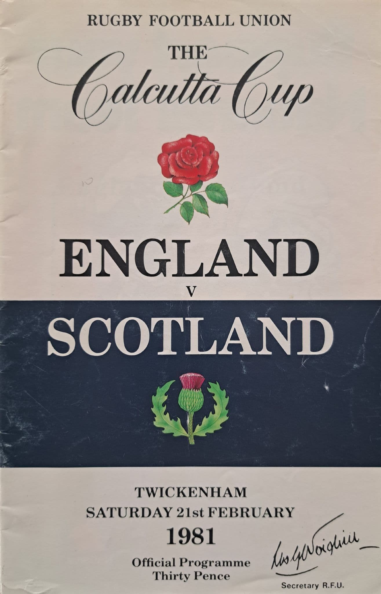 Programme from England's' 5 Nations match with Scotland at Twickenham in February 1981; a fairly good copy, with slight marking to the cover - but no writing