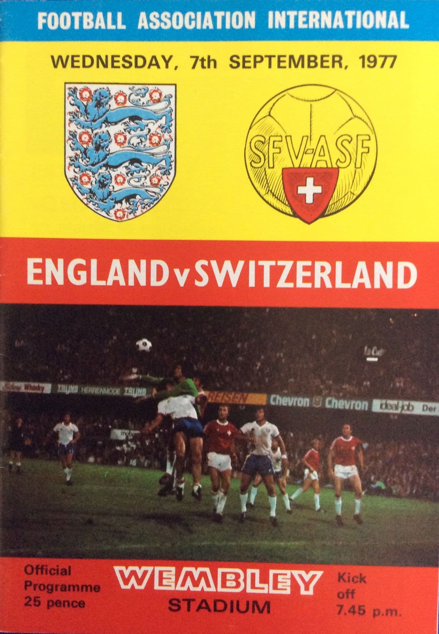 Programme from the friendly international, played at Wembley Stadium, on Wednesday September 7th, 1977; in very good condition; match number 515; Ron Greenwood's first match in charge was a lack-lustre 0-0 draw