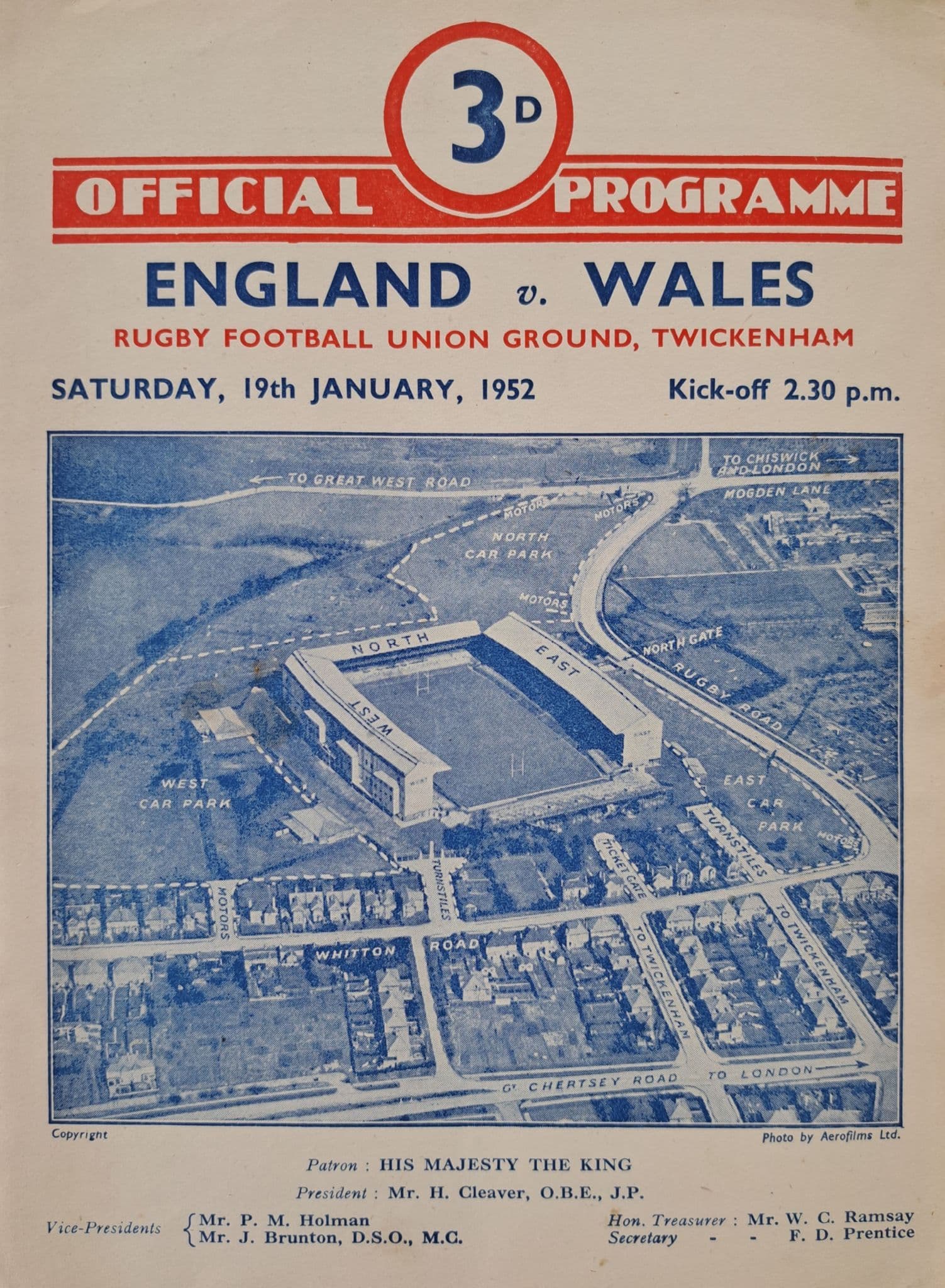 Programme from England's' 5 Nations match against Wales at Twickenham in 1958; a good copy with scores / scorers added to the centre page; the visitors won 8-6 on their way to a Grand Slam