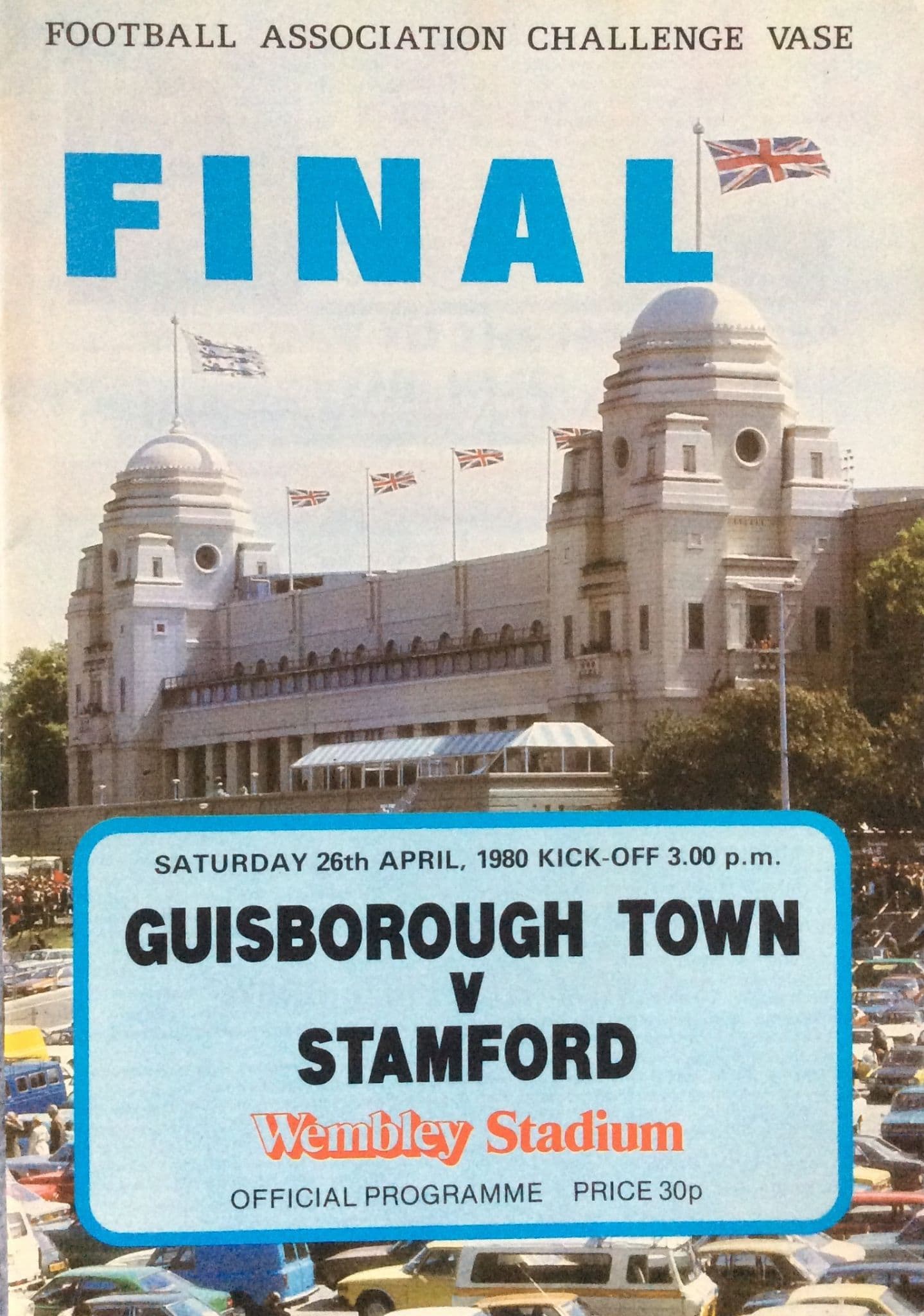 Programme from the FA Challenge Vase Final which took place between Guisborough Town and Stamford, on Saturday April 26th (1980), at Wembley Stadium; programme is in very good condition; Stamford won 2-0