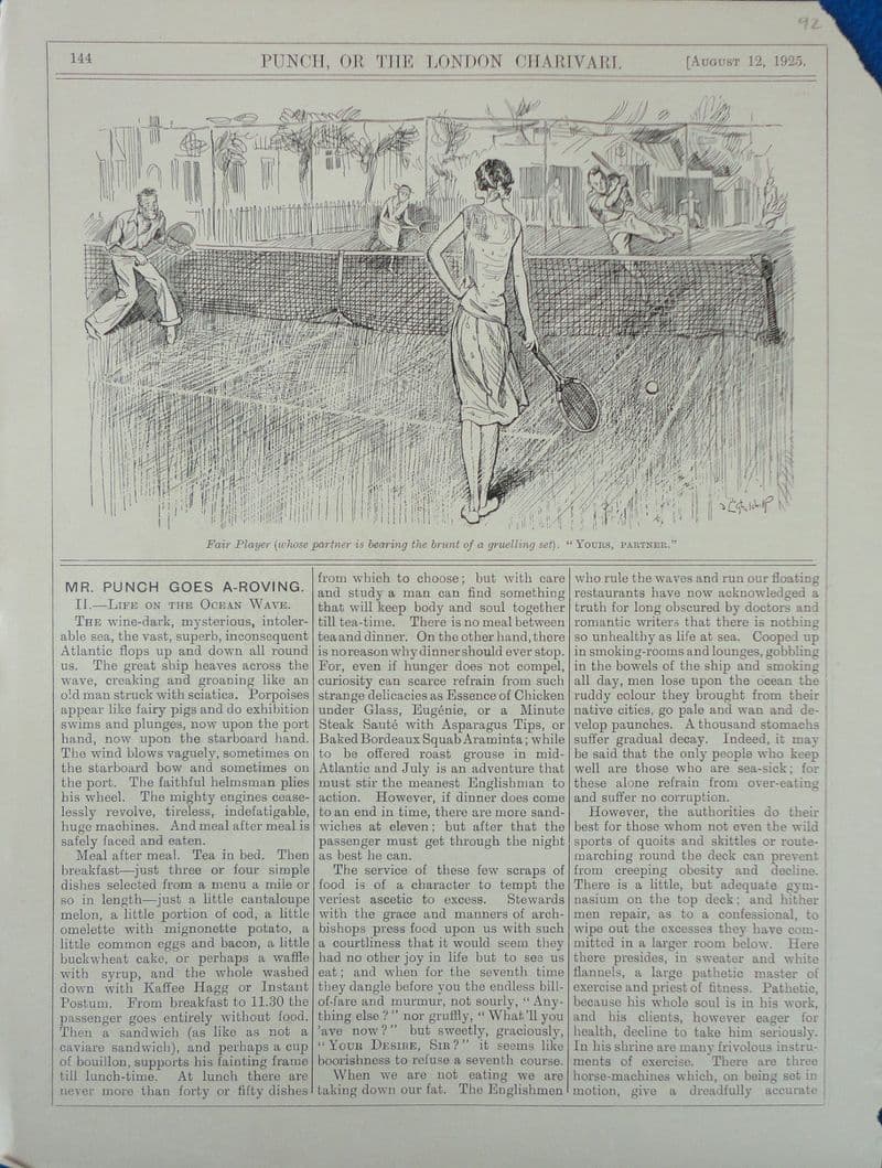 Cartoon drawn by David Louis Ghilchik, and taken from Punch Magazine (or The London Charivari) on August 12th, 1925; half-page black and white; image is approximately 11cm by 18cm