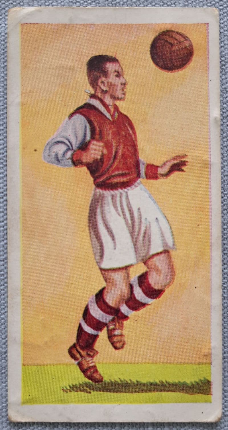 One of the "Famous Footballers" cards, given away with Chix Bubble Gum in 1955; in fair condition, with slight indentations / signs of wear; c.10cm by 5cm; card is number 6 (Tom Cummings of Burnley)