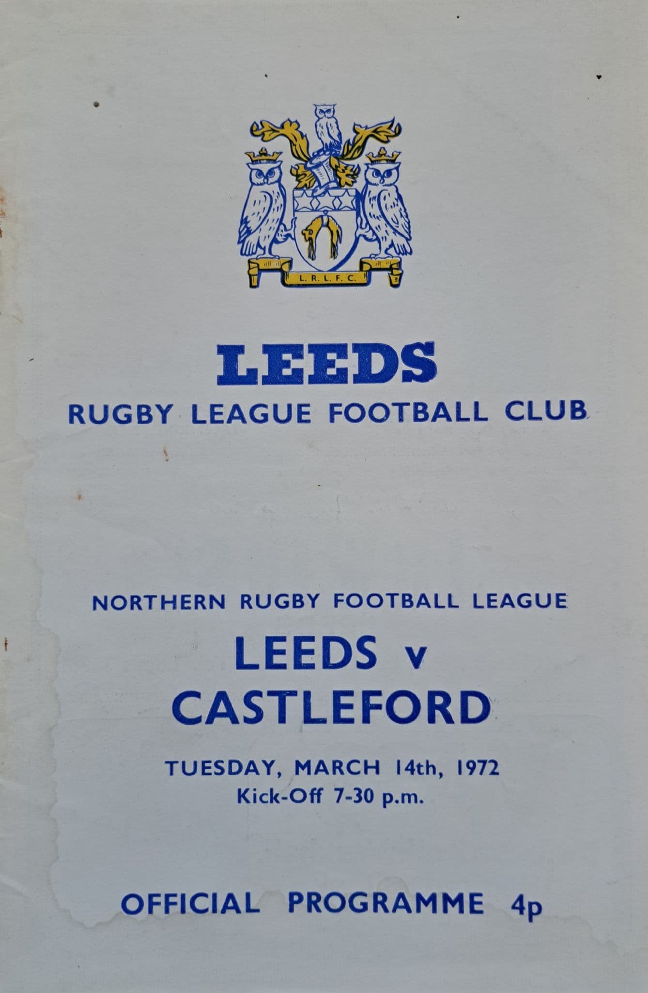 "The Leeds Loiner" Programme from the Leeds v Castleford Rugby League Championship game, played on Tuesday March 14th, 1972; 12 pages, in good condition with slight marking to the front cover but no writing