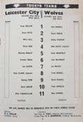 Programme from the Division 1 game between Leicester and Wolves at Filbert Street; played on Wednesday October 9th, 1968; 16 pages; in good condition, with a slight pocket fold; Vol 3 Number 9 of the Football League Review is loose inside