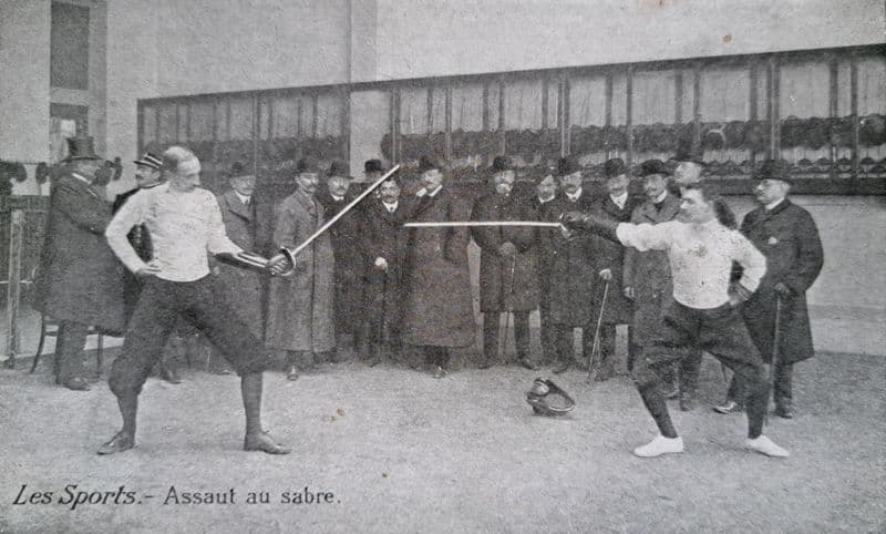 Fencing postcard; "Les Sports - Assaut au sabre" to the front; c.8.5cm by 13.5cm; in good condition, with no writing to the rear