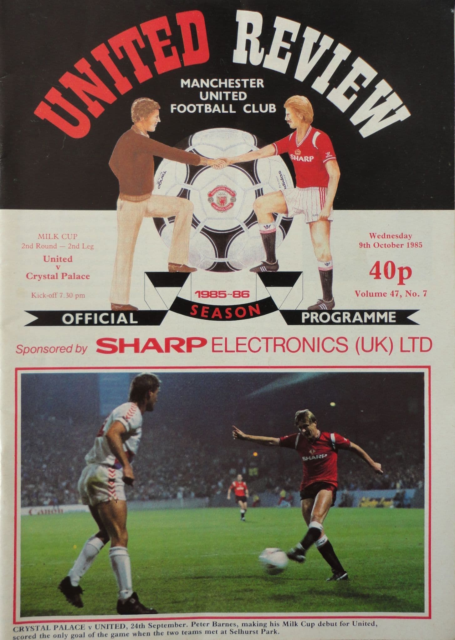 Programme from the Milk Cup (Second Round Second Leg), between United and Crystal Palace at Old Trafford - played on Wednesday October 9th, 1985; in very good condition; 24 pages
