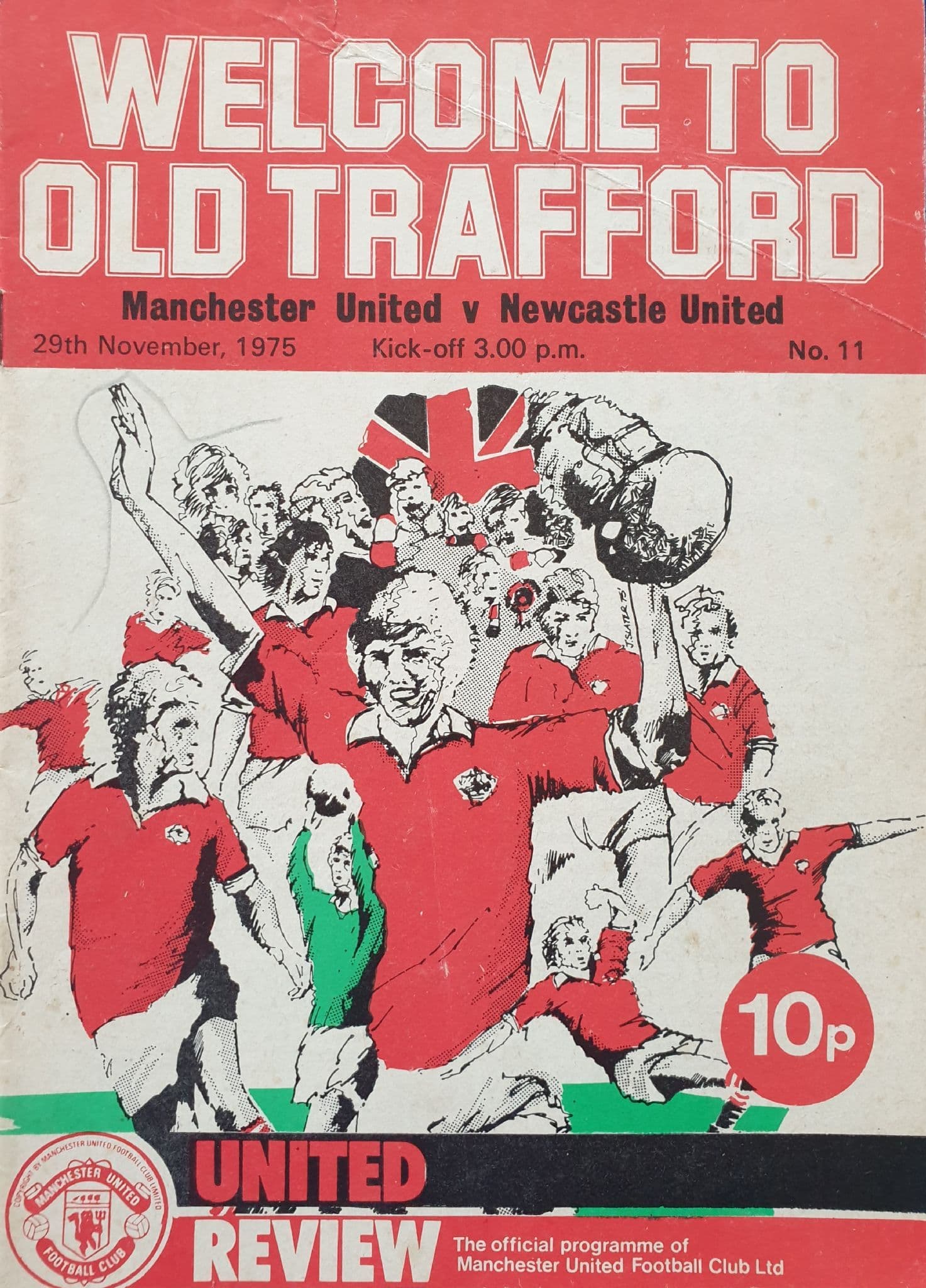 Programme from the Division One match between Manchester United and Newcastle United; played at Old Trafford on November 29th 1975; programme in good condition, but with small tear to bottom of the rear cover; 20 pages