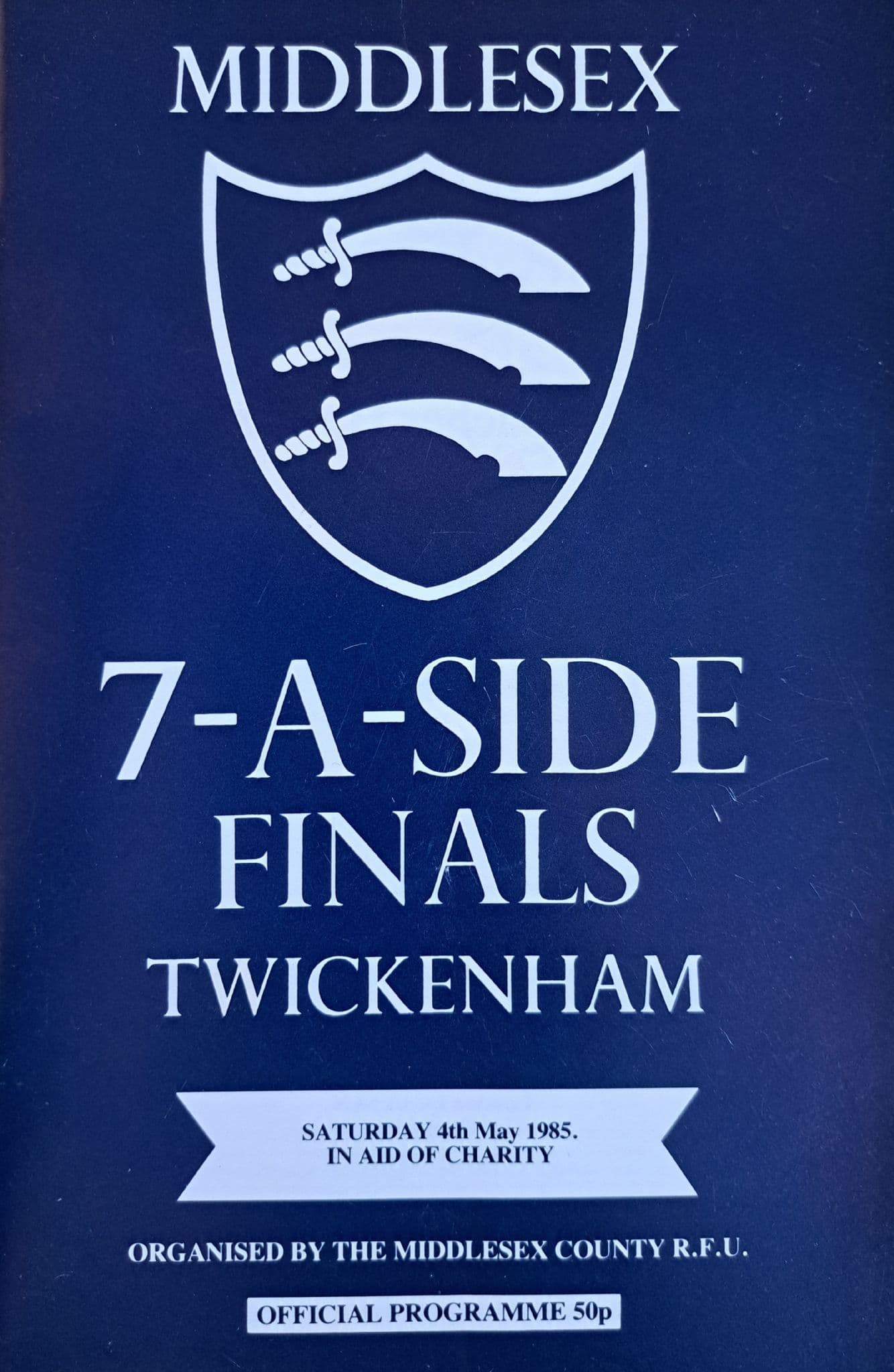 Programme from the Middlesex 7-a-side Finals,held at Twickenham on Saturday May 4th, 1985; 36 pages; in good condition, with no writing