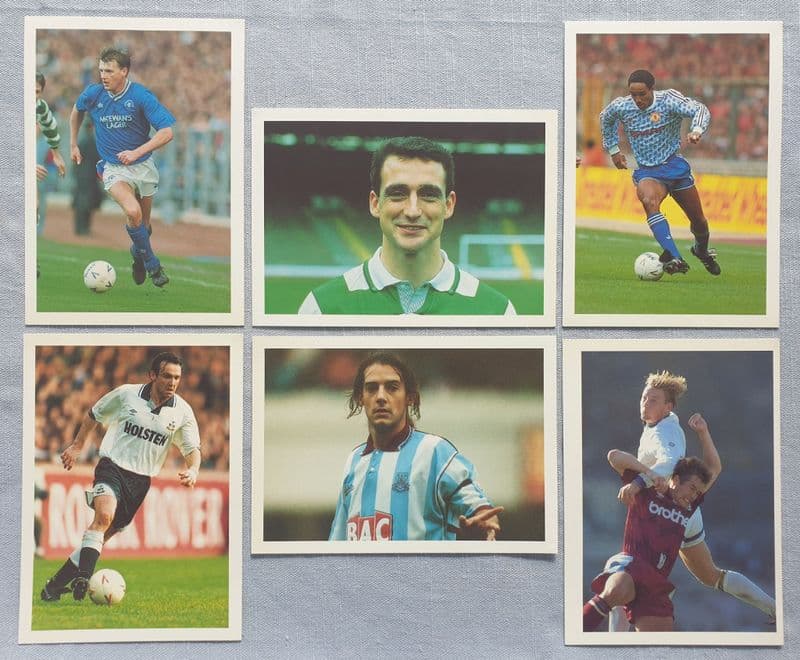 Six postcard sized cards produced by Bassett sweets in 1992 - in conjunction with Match Magazine; in very good condition; the midfield players are Ince, Spackman, Allen, McStay, Bishop and Batty