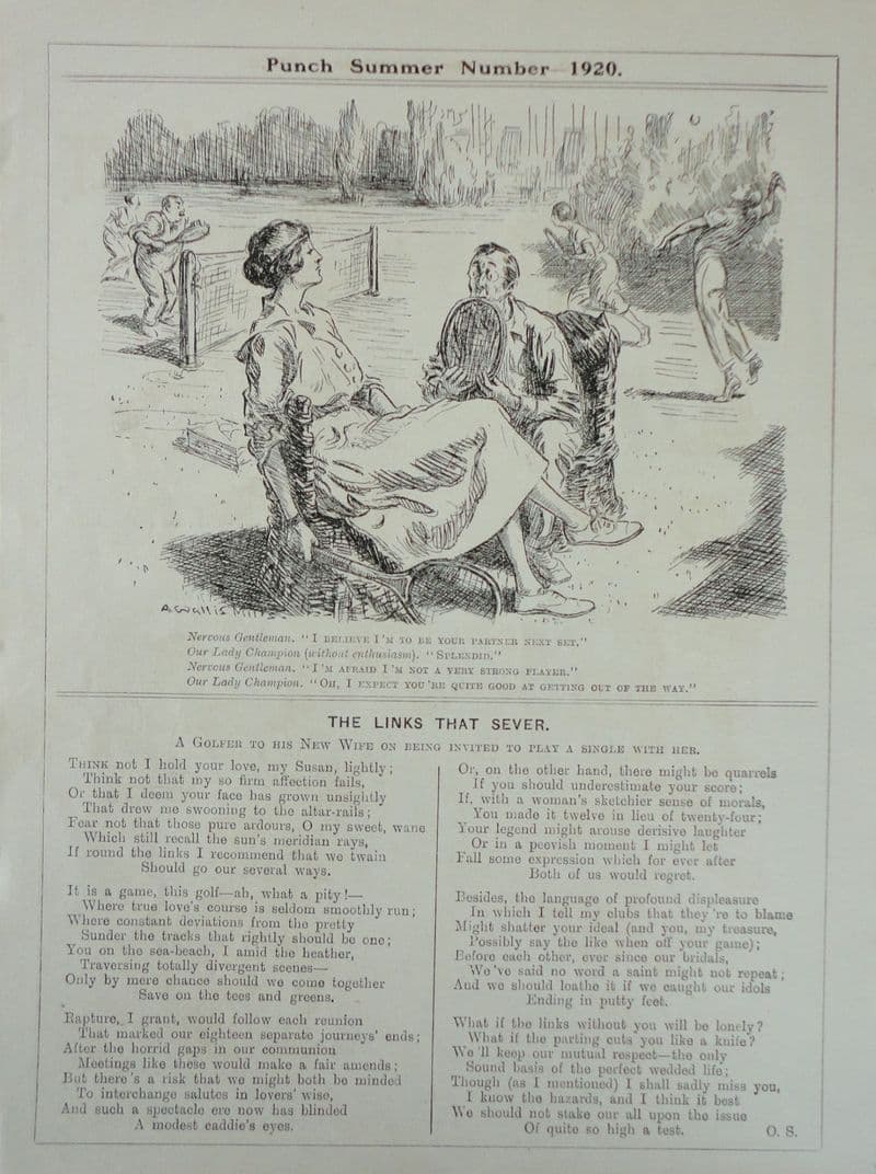 One of a series of Wallis Mills cartoons - a man who mocked the bright young things of the 1920s in magazines such as Punch and The Strand; half-page black and white cartoon from a 1920 edition of Punch; image is 18cm by 14cm