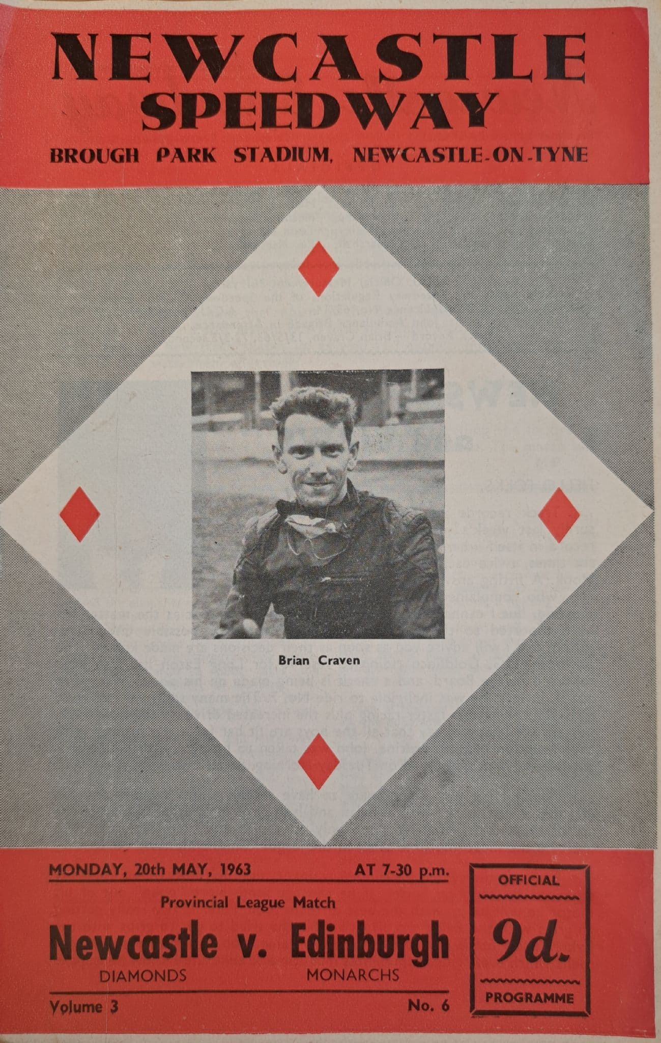 Programme from the Provincial League match, held at Brough Park (Newcastle), on Monday May 20th, 1963; 8 pages; in fairly good condition, with results added neatly and signs of pocket folding