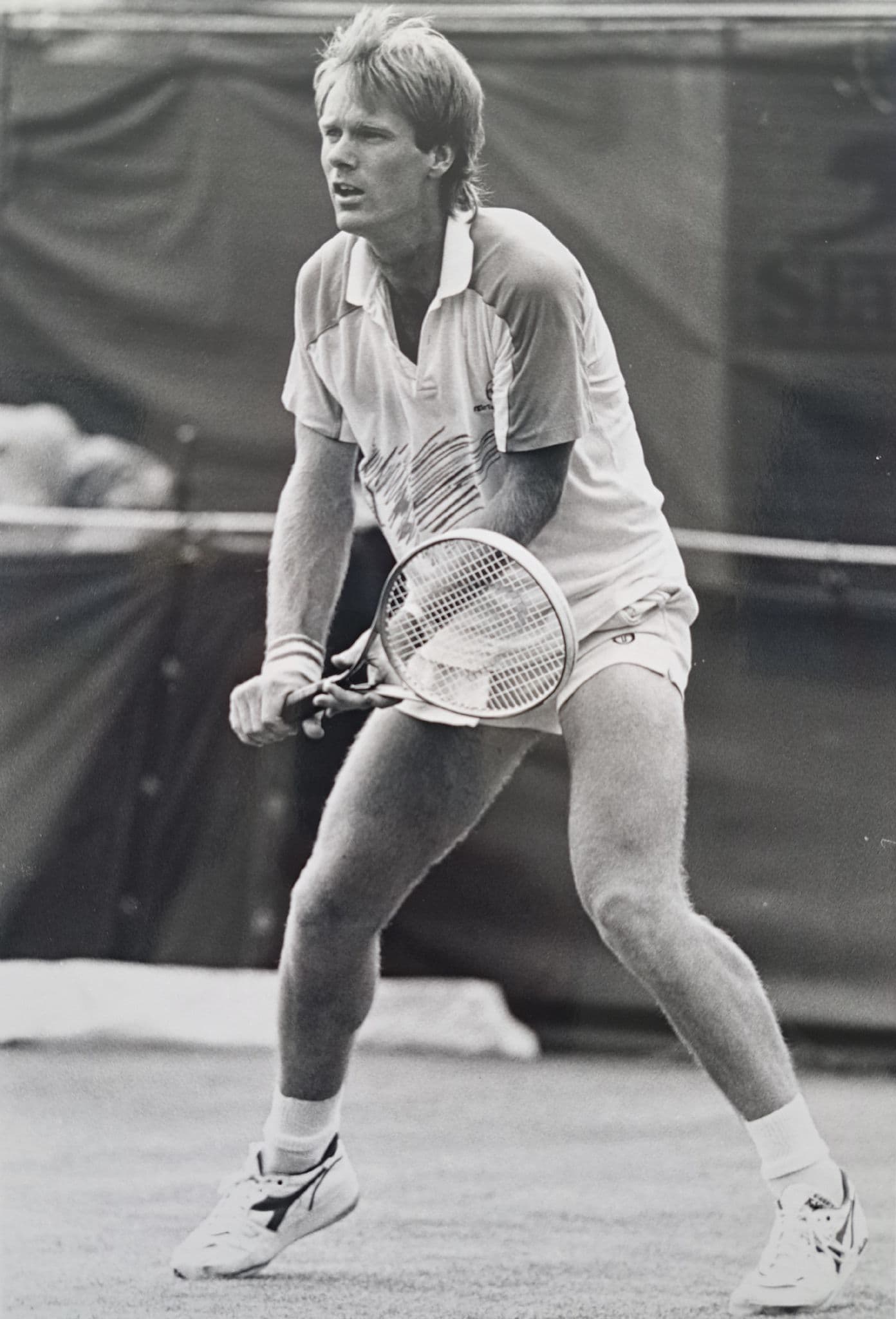 Photo of Britain's Nick Brown, playing in the LTA Challenger at Manchester; 16.5cm by 24cm; portrait; from a collection of Professional Sport tennis photographs