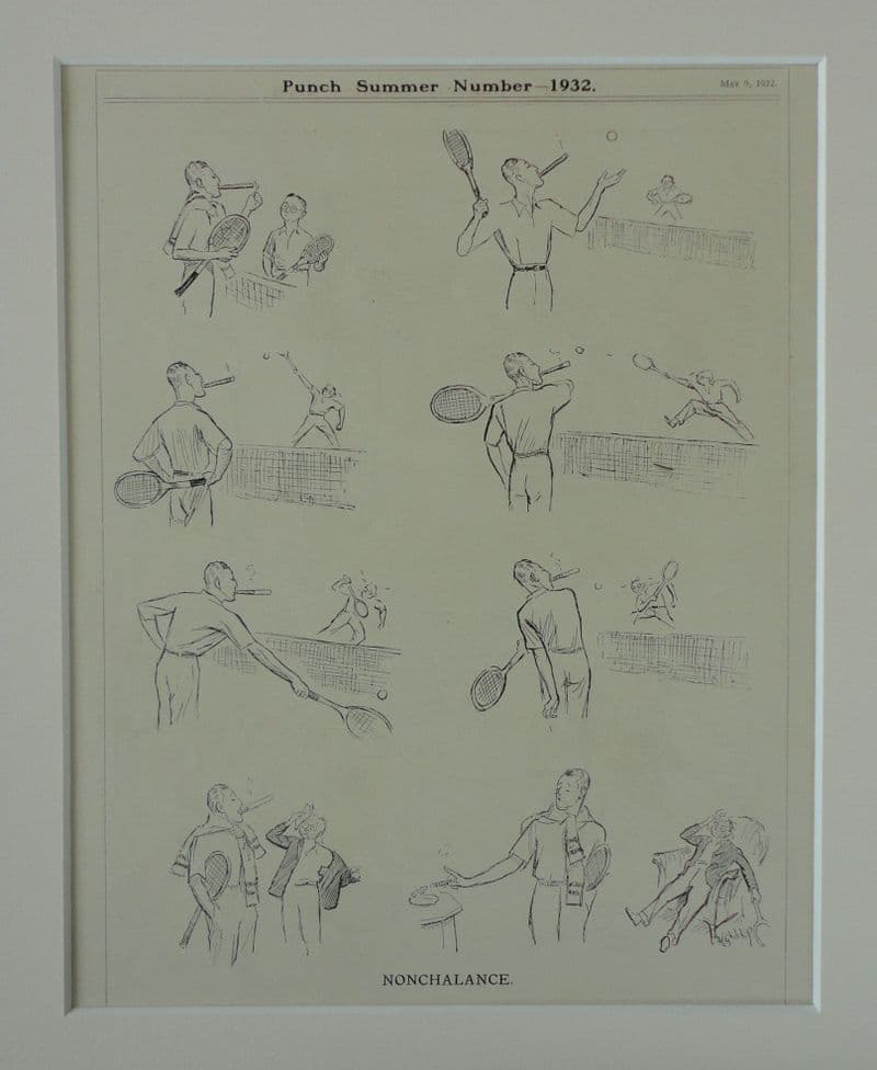 Cartoon drawn by David Louis Ghilchik, and taken from Punch Magazine (or The London Charivari) on May 9th, 1932; full-page black and white; image is approximately 24cm by 18cm; comes with border and backing ready for framing; am reminded of Terry Thomas in the "School for Scoundrels" ......