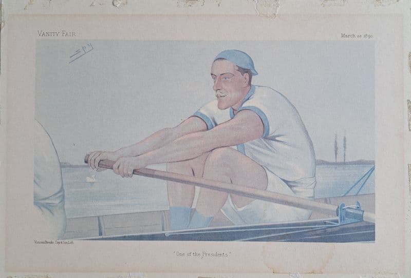 Vanity Fair print, of Mr Mr Stanley Muttlebury of Cambridge University; dated "March 28 1890" above the image - with "On of the Presidents" below the image; image itself is c.31.5cm by 18.5cm; the image is in fairly good condition - though there is some tape wear to the outside of the border (c.2.5cm away from the image, so would be hidden when framed), and a small stain to the bottom right corner