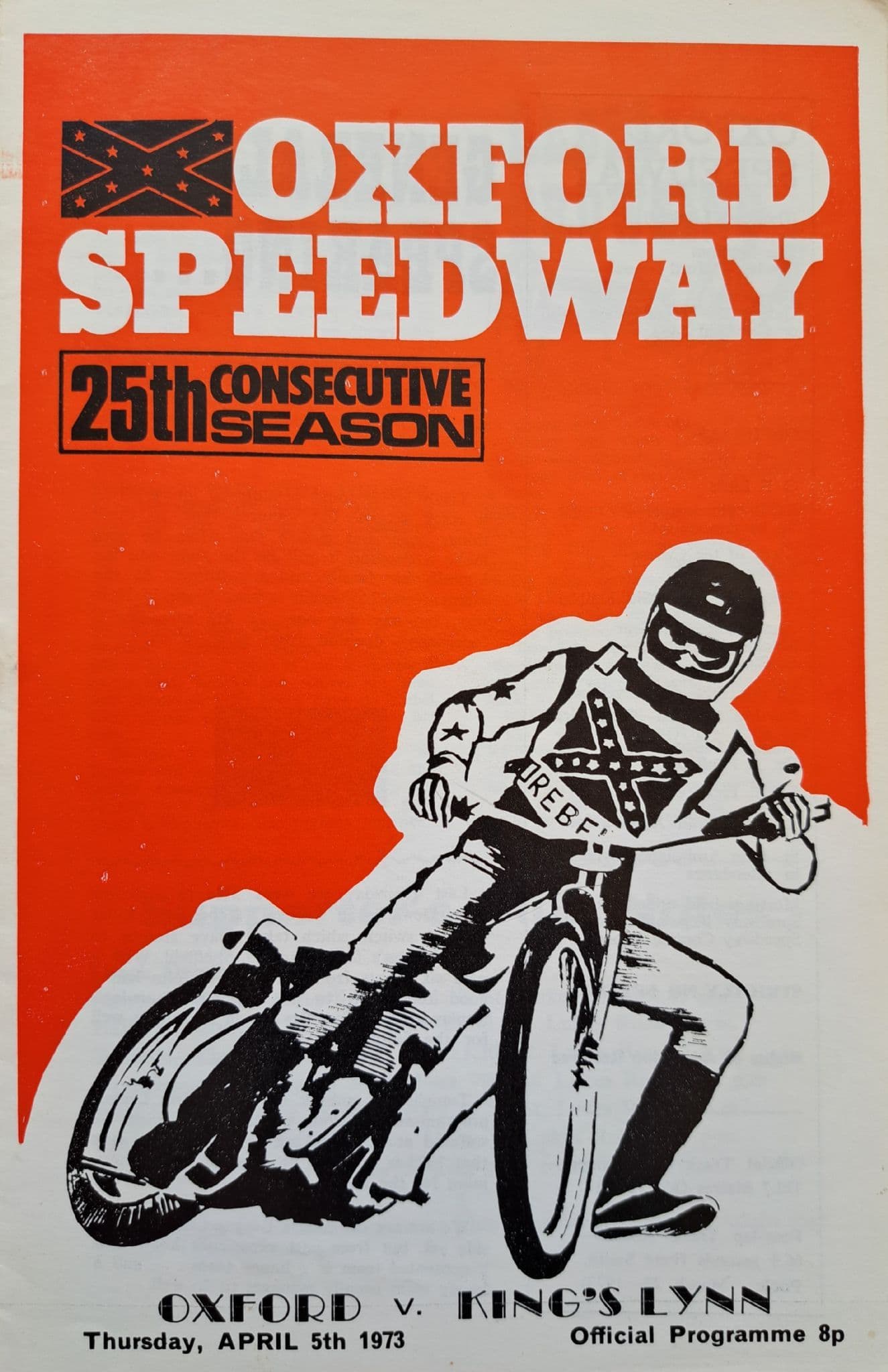 Programme for the British League match between Oxford and King's Lynn; held on April 5th, 1973; 8 pages; in good condition, with results added