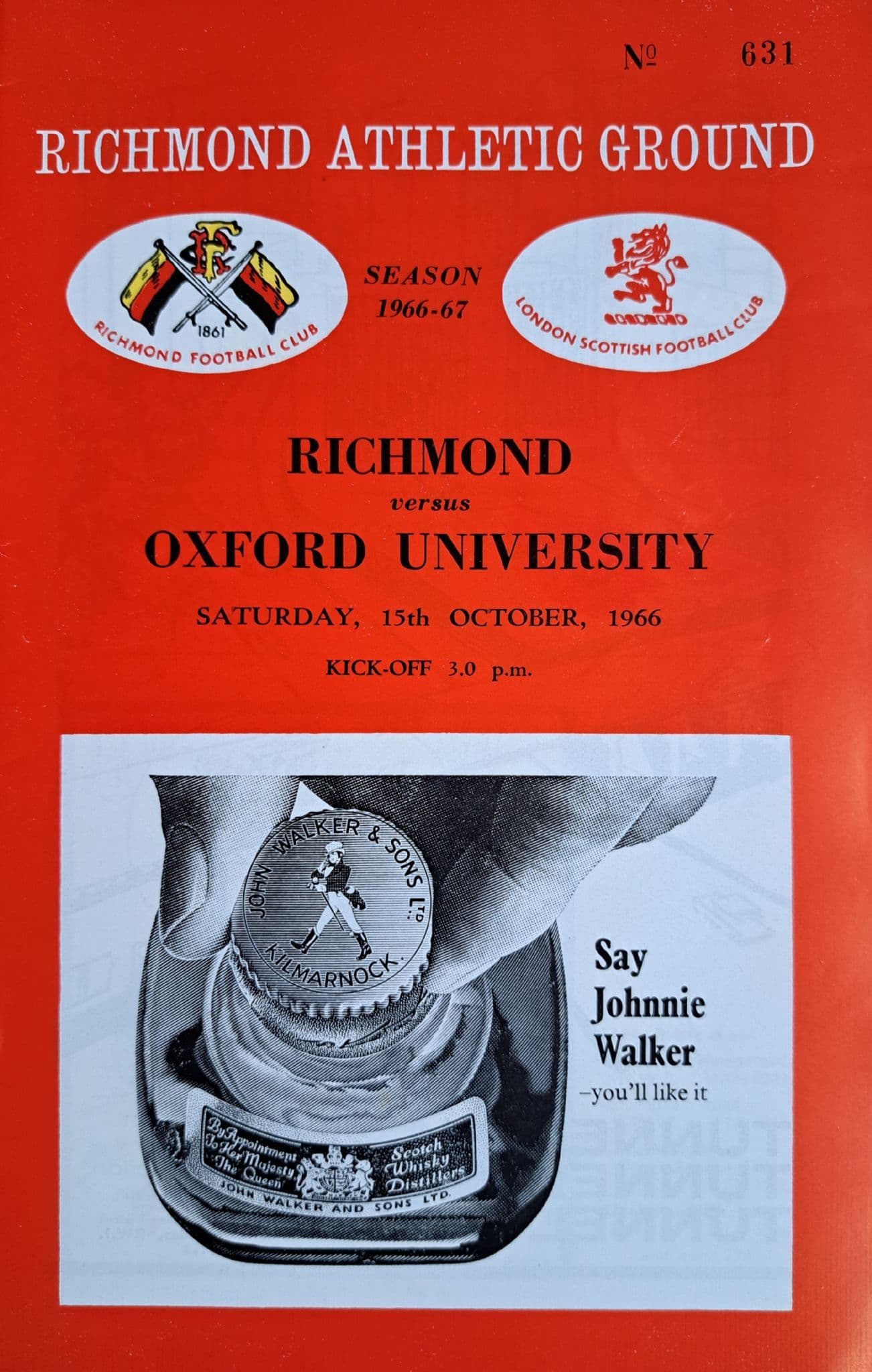 Programme from the game between Richmond and Oxford University - played on 15th October, 1966; 16 pages. In good condition with no writing