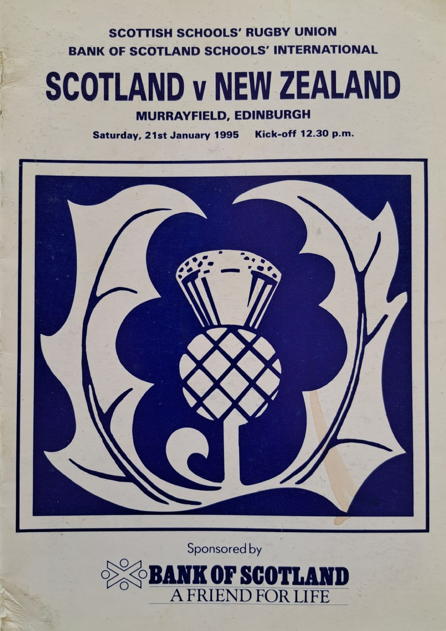 Programme for the Schools match, played at Murrayfield on Saturday 21st January, 1995; programme is in good condition with slight creasing to the bottom left-hand corner ot the front cover - but no writing inside; the visitors included Doug Howlett and Xavier Rush