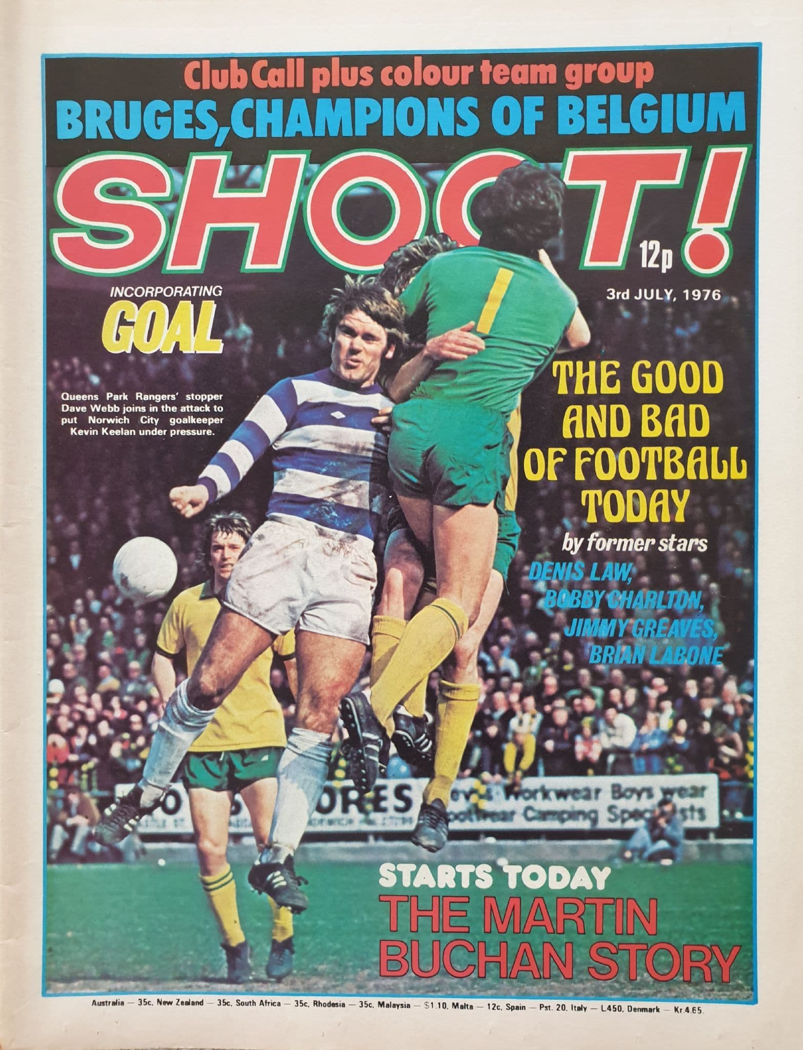 Launched in 1969, this iconic football magazine was produced until 2007 - though it was produced monthly from May 2001 - by 1976 it was incorporating Goal magazine; 40 pages of articles, pictures, adverts and competitions; in very good condition; this issue has colour pictures of Clive Woods, Frank Stapleton and FC Bruges