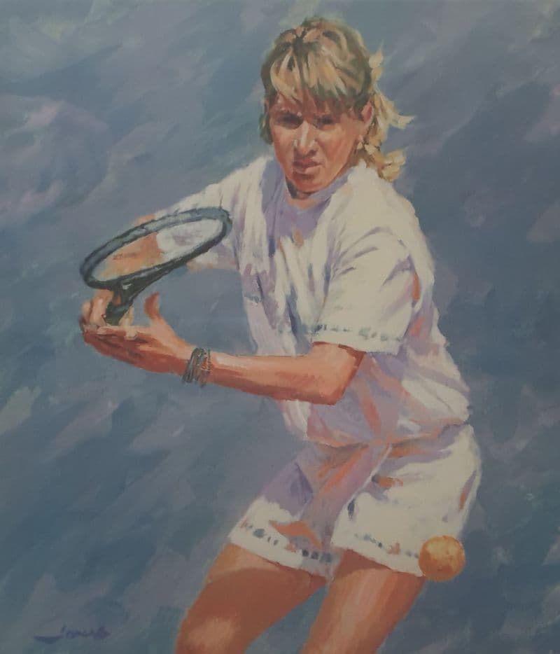 Limited edition print of Steffi Graf - 809 of 950; pencil signature to the border below the picture; image is 32cm by 35cm; framed with glass cover, which means that it will be a little more expensive to post than other items (!); overall size is about 49cm x 53cm