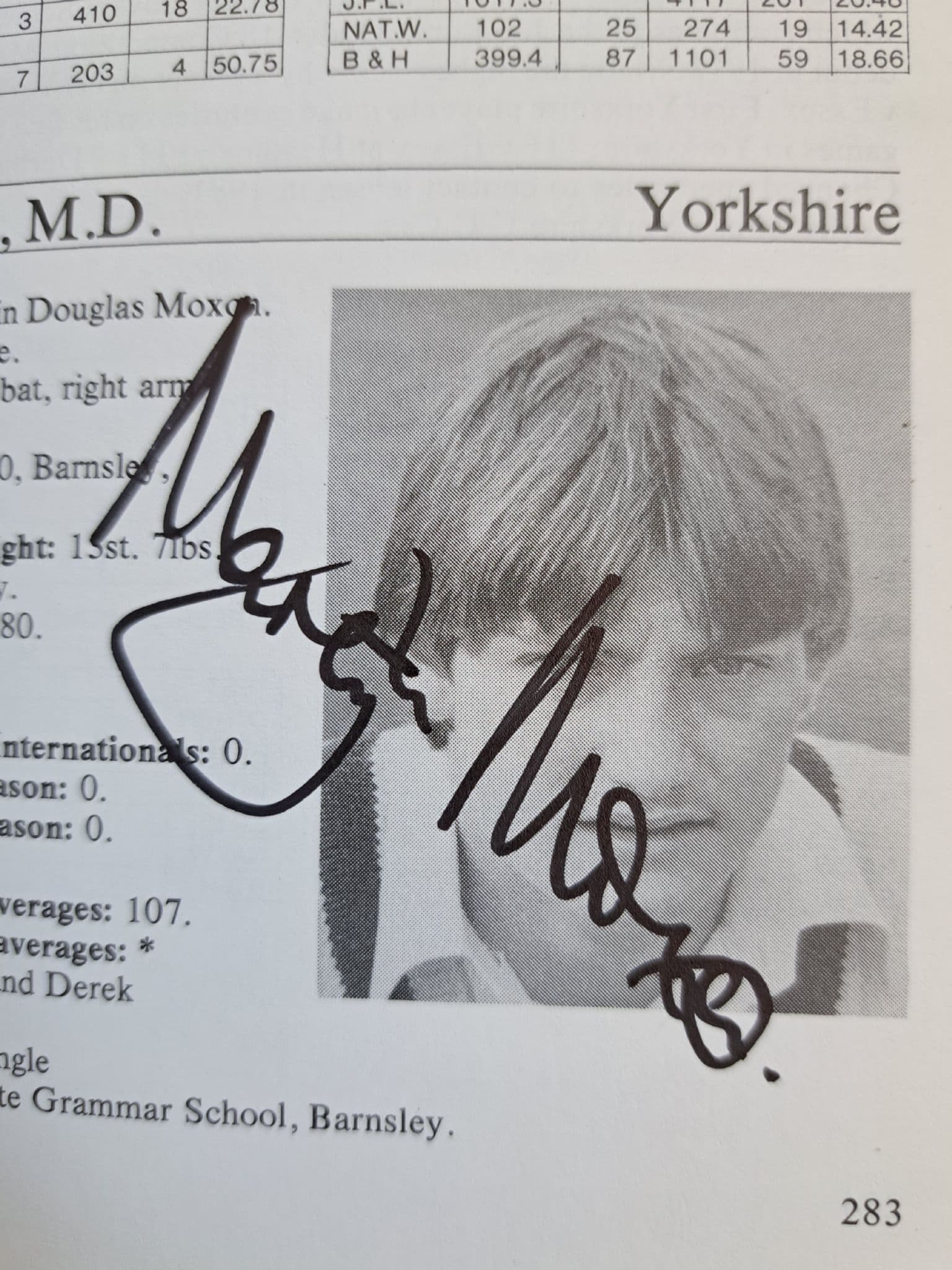 Published by Cricketer's Who's Who Ltd in 1982; soft cover in good condition - with slight rubbing to the edges / corners; 462 pages; compiled and edited by Iain Sproat MP; biographies and pictures of over 300 Test and County players; an introduction by Ian Botham; this copy contains the signatures of 30+ players (with each signature sitting over their picture / info) - players include Botham, Emburey, Gooch, Kapil Dev, Russell and Woolmer
