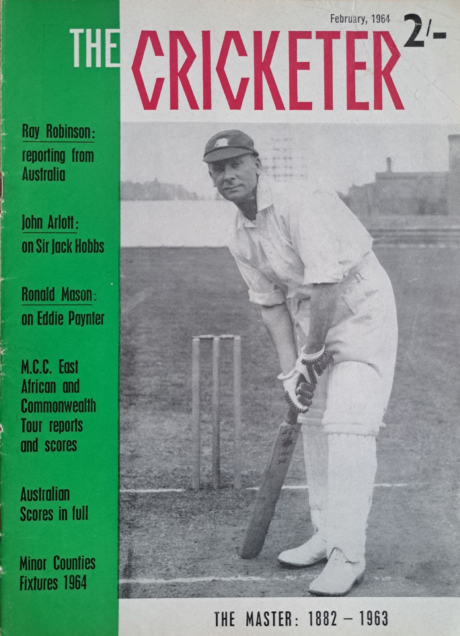 36 pages of cricketing nostalgia, from some great cricket writers, including Ray Robinson and John Arlott; soft cover in good condition - with pin holes to the spine, where a previous owner had stitched some copies together (!); pictures, articles and stats throughout; the cover shows Jack Hobbs, who had recently passed away - and whose obituary was inside