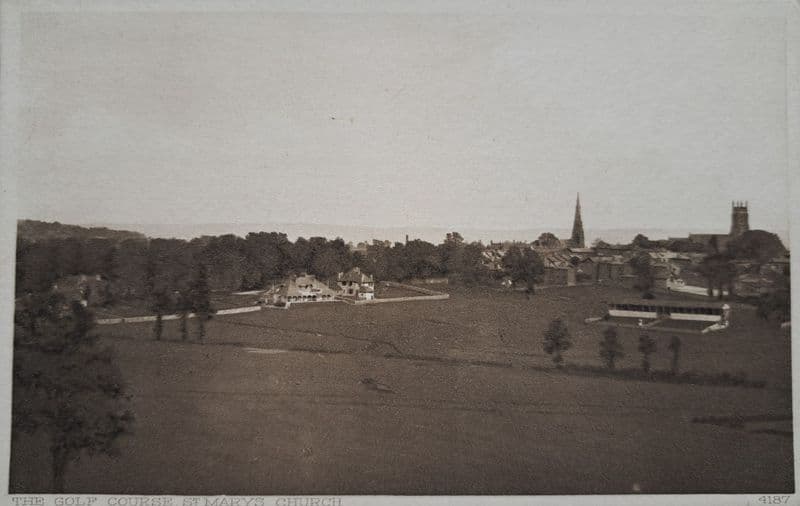 Un-used post card, showing the golf course at Torquay and St Mary's Church; in good condition; c.9cm by 14cm; published by the "Torquay Times" of Torquay