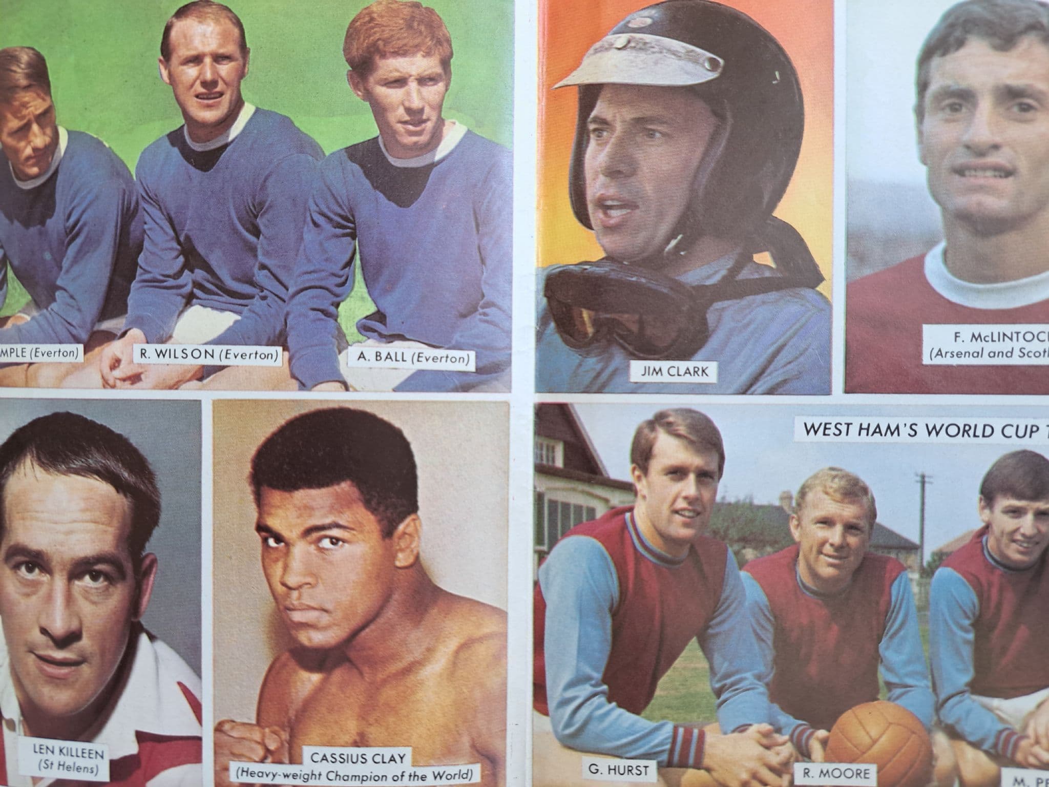 Fold-out booklet presented with the Hornet comic; single-sided, fold-out construction; colour pictures, with a focus on football, but other sports included - Southampton, Manchester City, Rangers, Hull City, Cassius Clay, Jim Clark, .....