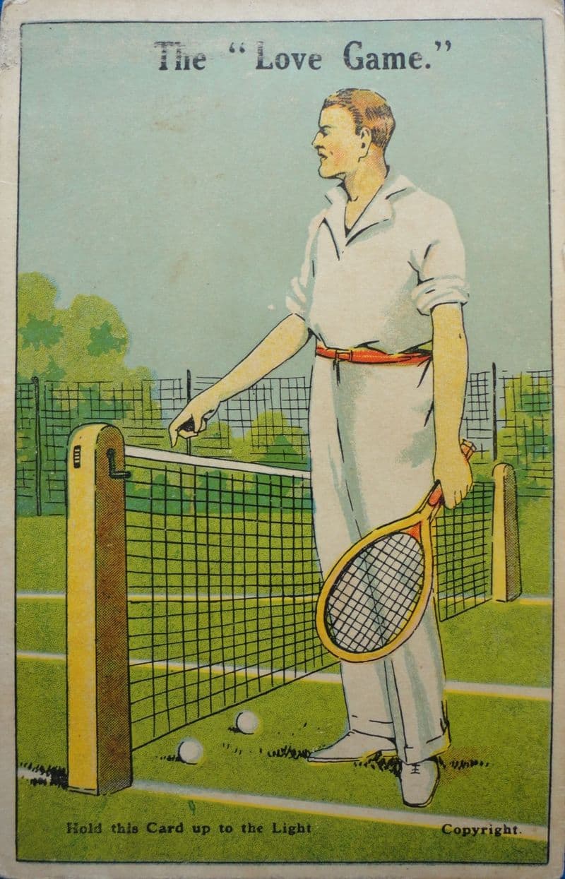 Unused "Mystery Silhouette Post Card", produced by E.T.W. Dennis & Sons (from London & Scarboro) - part of Dennis's Dainty Series; approximately 9cm by 14cm; in fairly good condition, with signs of colouration to the reverse. However, if you hold the card up to a light source, you see another figure, to add to the picture!