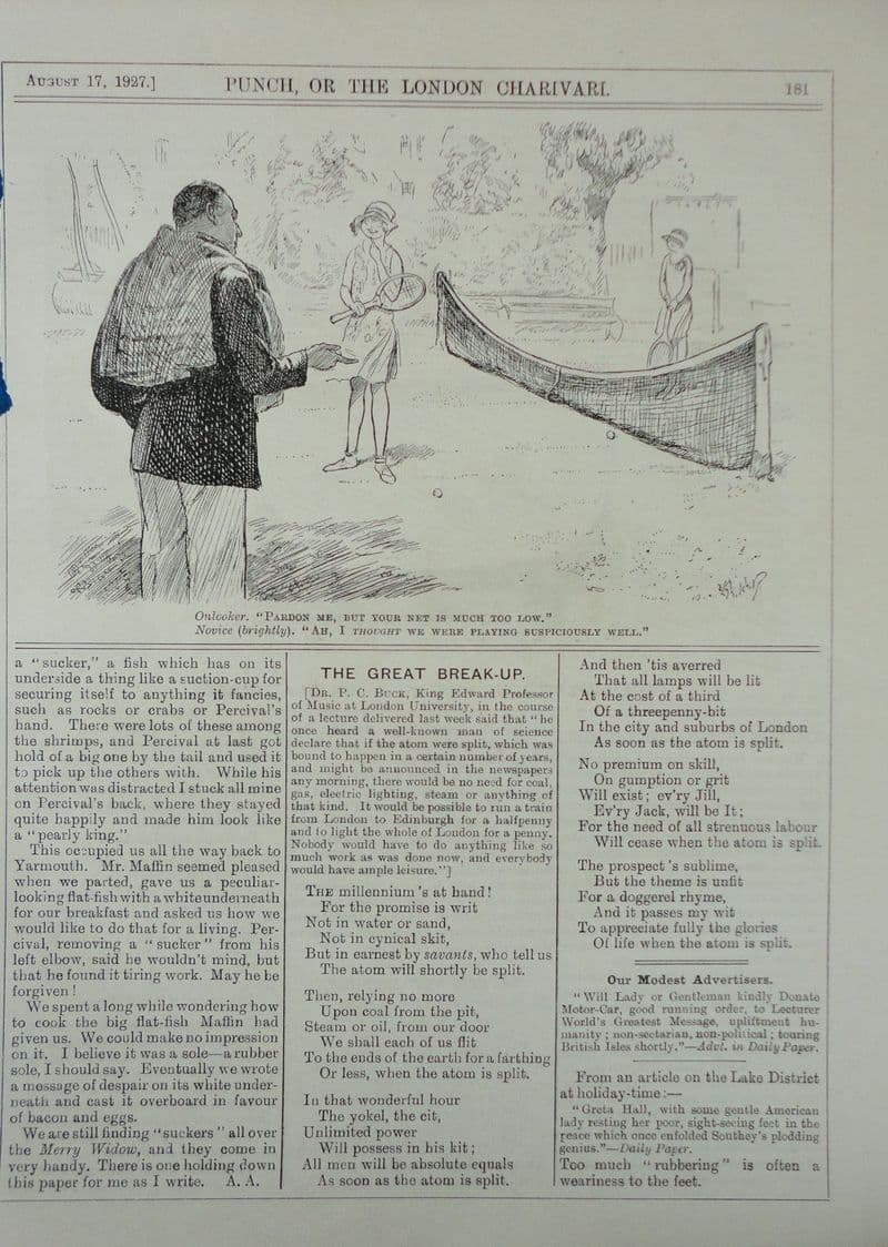 Cartoon drawn by David Louis Ghilchik, and taken from Punch Magazine (or The London Charivari) on August 17th, 1927; half-page black and white; image is approximately 12cm by 18cm; slightly careless removal has made a slight inroad into the left-hand-side border .....