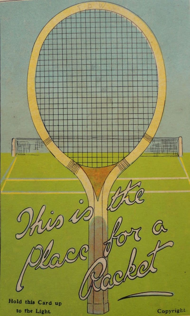Unused "Mystery Silhouette Post Card", produced by E.T.W. Dennis & Sons (from London & Scarboro) - part of Dennis's Dainty Series; approximately 9cm by 14cm; in fair condition, with writing to the reverse and wear to the bottom left-hand corner - also "I D W" has been marked faintly in pencil to the top of the frame. However, if you hold the card up to a light source, you see two figures kissing, to add to the picture!