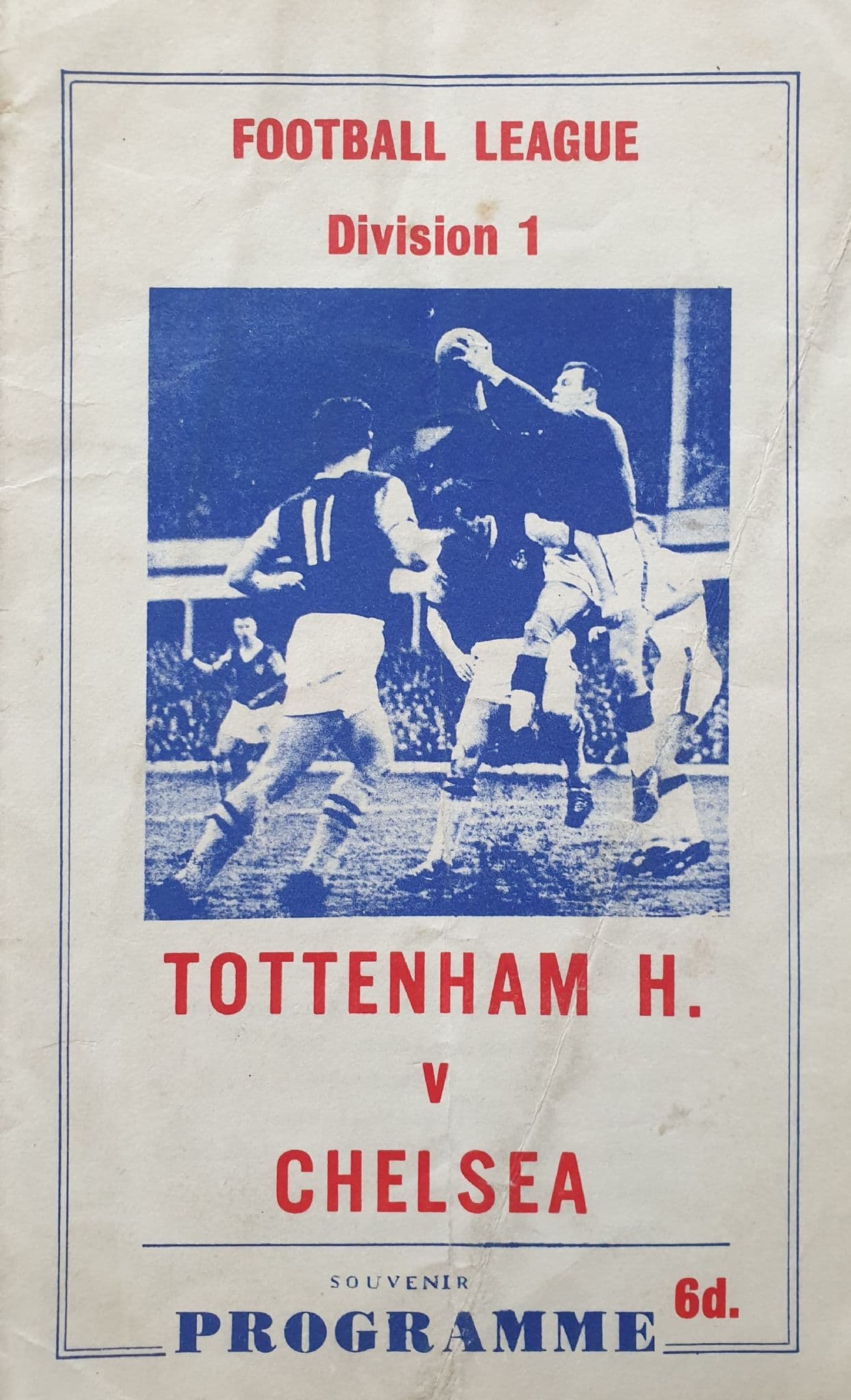 League Division One fixture between Spurs and Chelsea; played at White Hart Lane on March 18th 1967; programme in fairly good condition, with no writing but a vertical pocket fold / slight signs of pocket wear; 8 pages; unofficial (pirate) copy printed by Nicholls of Battersea; also includes lists of FA Cup winners, Footballer of the Year winners, and leading transfers in UK football