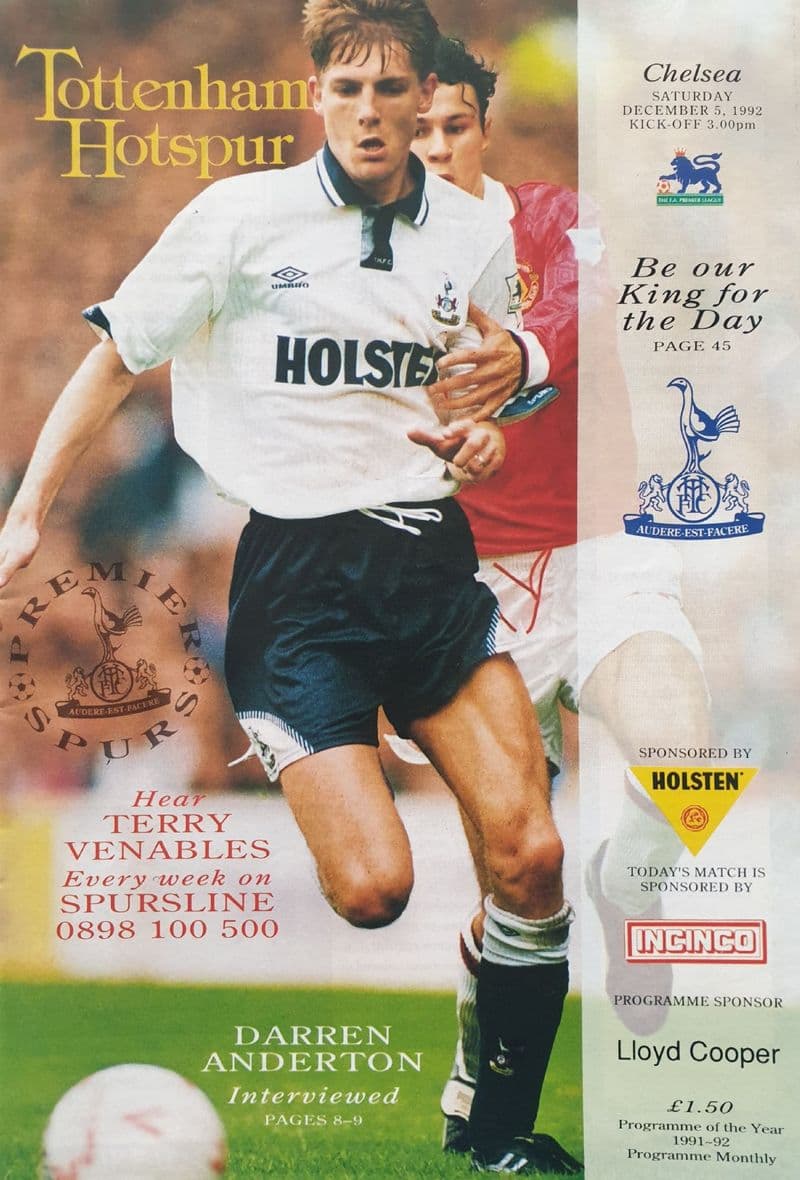 Premiership fixture between Spurs and Chelsea; played at White Hart Lane on Saturday December 5th, 1992; programme in good condition, with a hint of a pocket fold; 48 pages