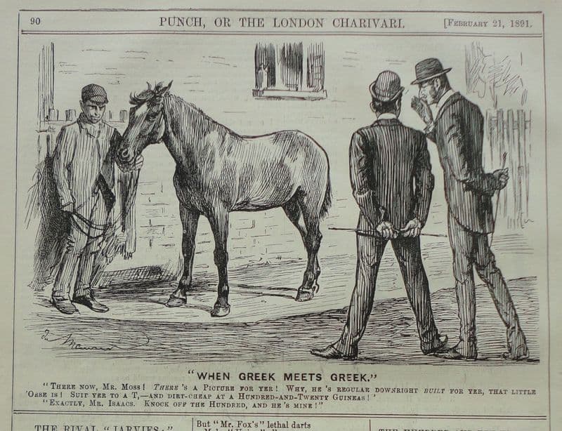 Horse racing cartoon by an unknown artist - as the signature is difficult to decipher; half-page cartoon from February 21, 1891. Would look excellent framed ..... The Racketeer knows as he already has a number of these in the study!