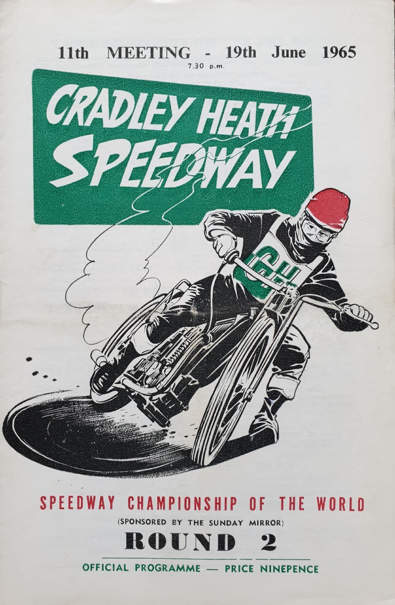 Programme from the World Championship Qualifier, held at Cradley Heath, on June 19th, 1965; 8 pages; in fairly good condition, with results added and some signs of pocket folding; Charlie Monk of Glasgow led the way
